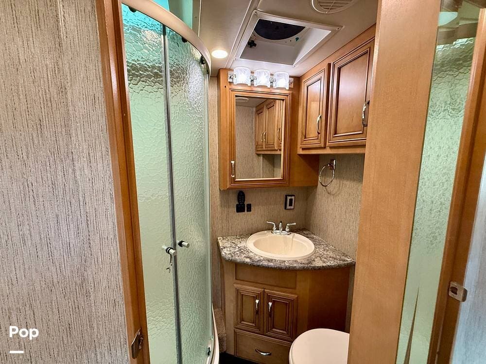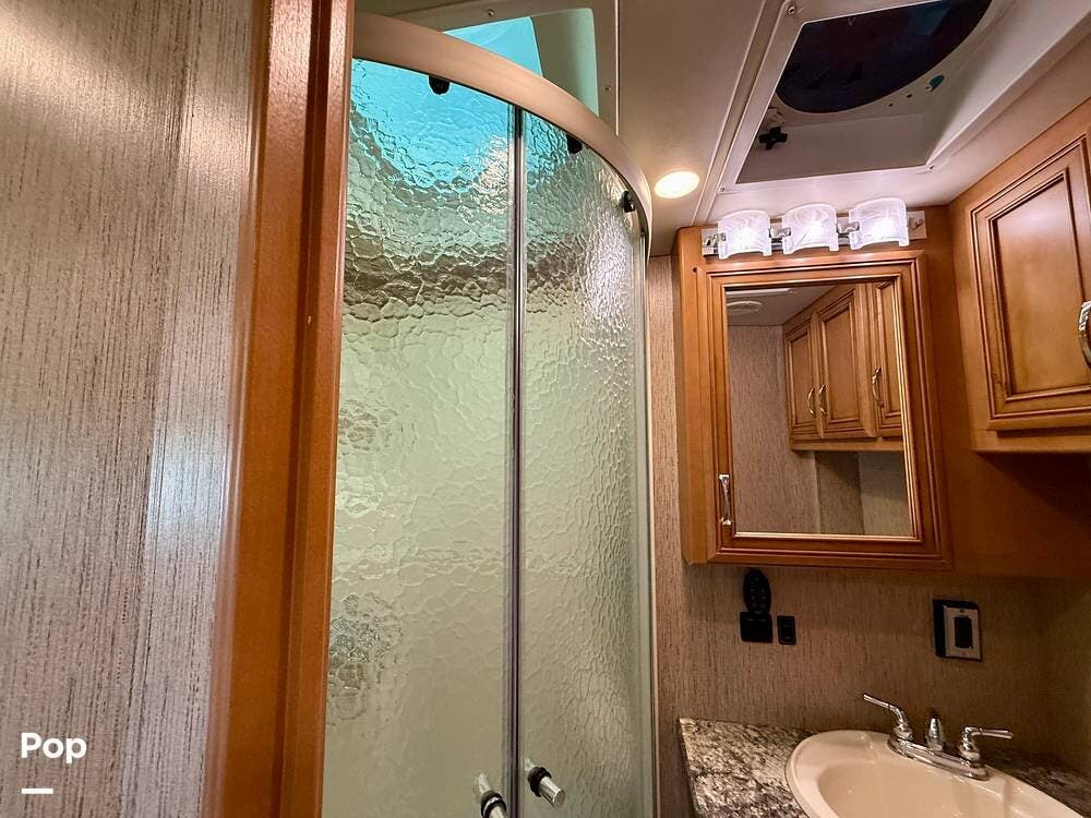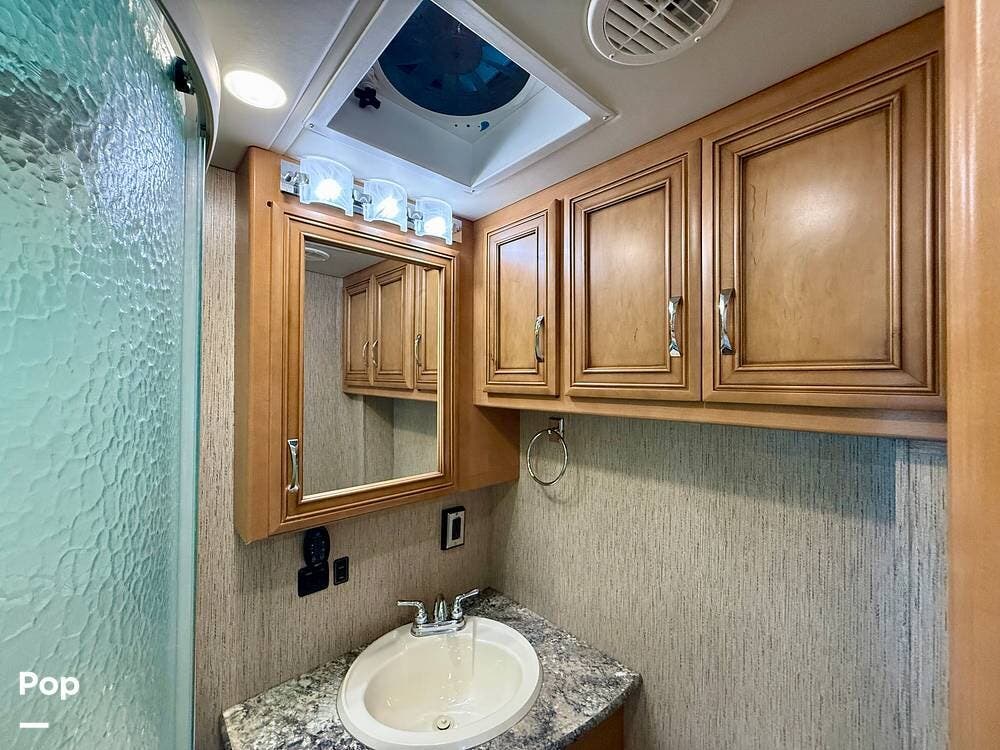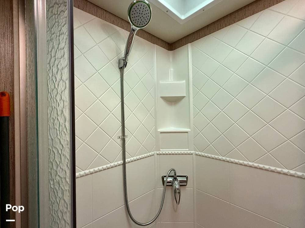 The bathroom features a skylight over the shower, allowing for natural light, and throughout the coach, you'll find thoughtful details that make life on the road more enjoyable.