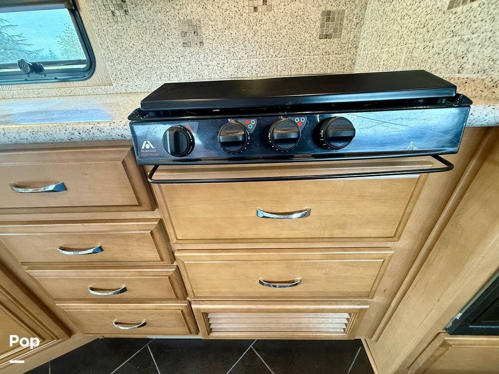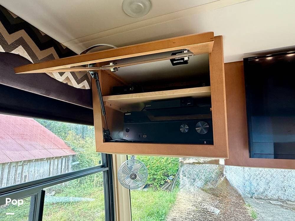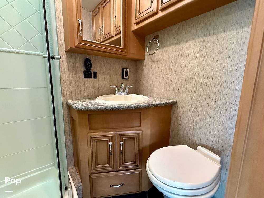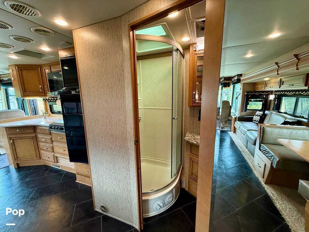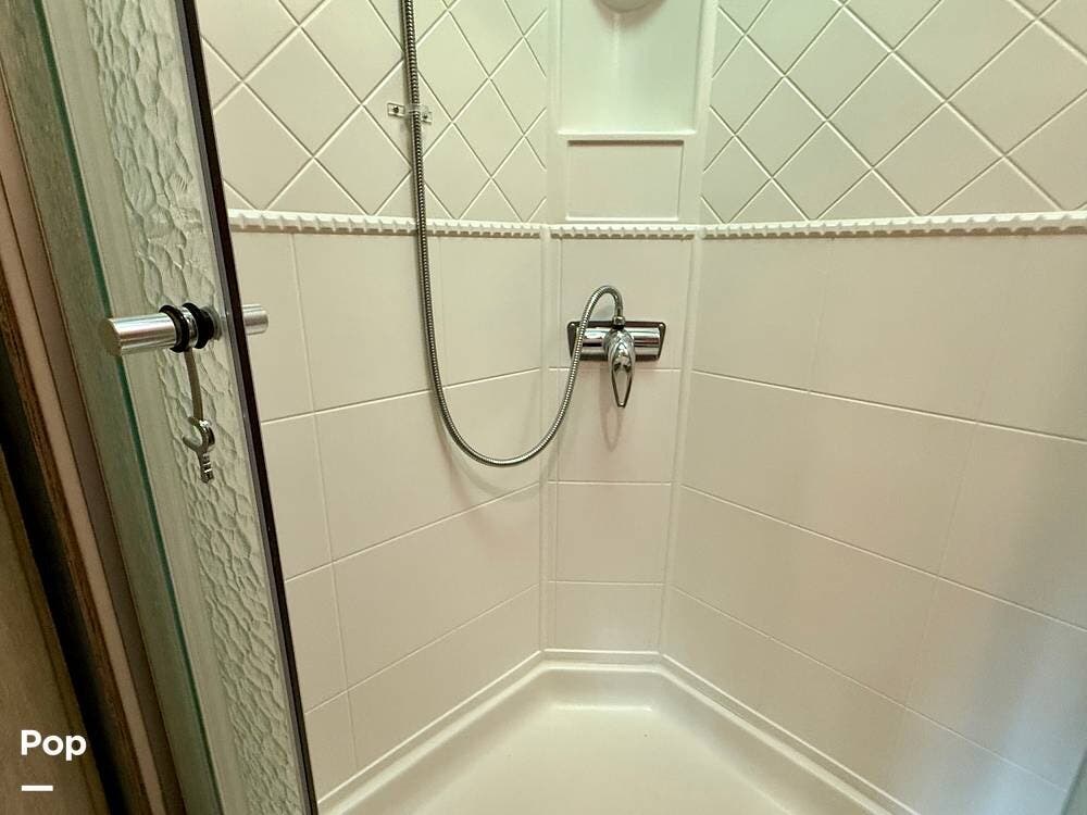 The bathroom features a skylight over the shower, allowing for natural light, and throughout the coach, you'll find thoughtful details that make life on the road more enjoyable.