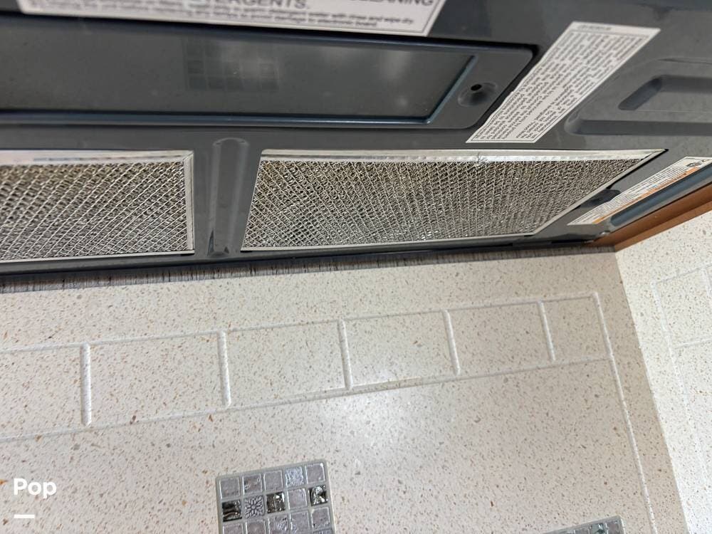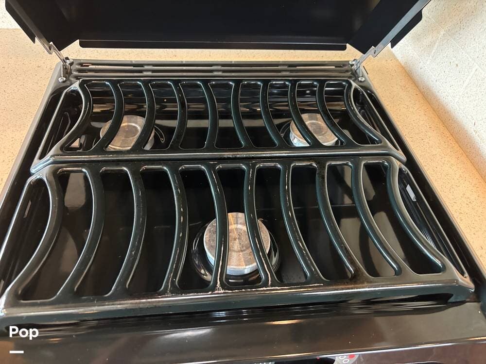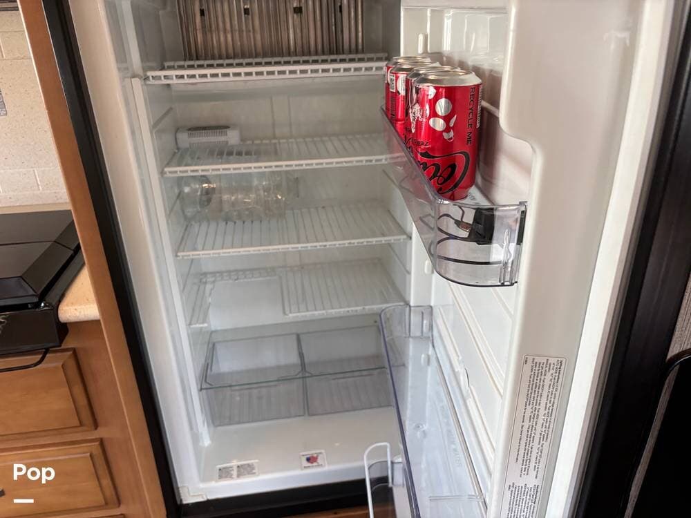 There is also a very functional kitchen with a two-door fridge, an ice maker, a backsplash, a stove, and a convection microwave oven.