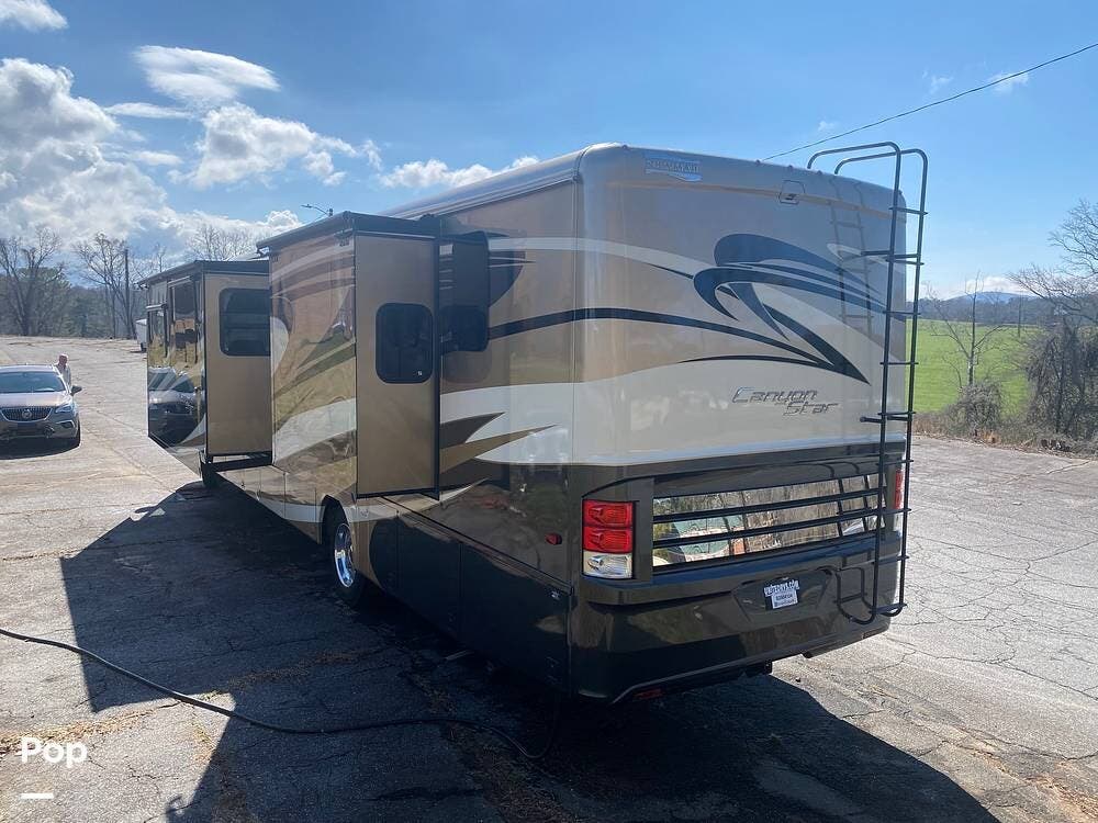 This RV is equipped with a Ford 6.8L V10 Triton 362-hp engine and features a Ford F53 chassis providing plenty of power, smooth handling, and a very stable ride. She also has rear and side-view cameras for a safer trip.