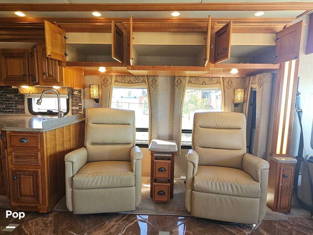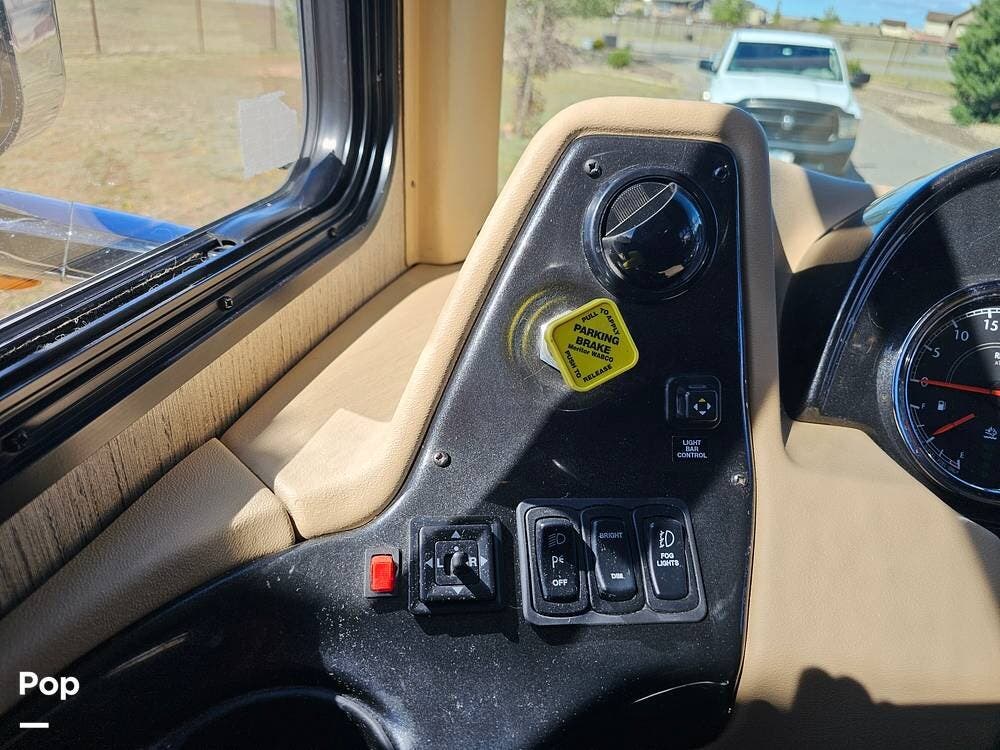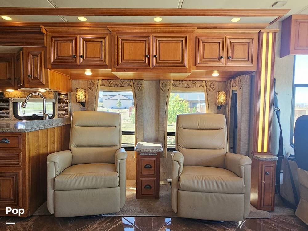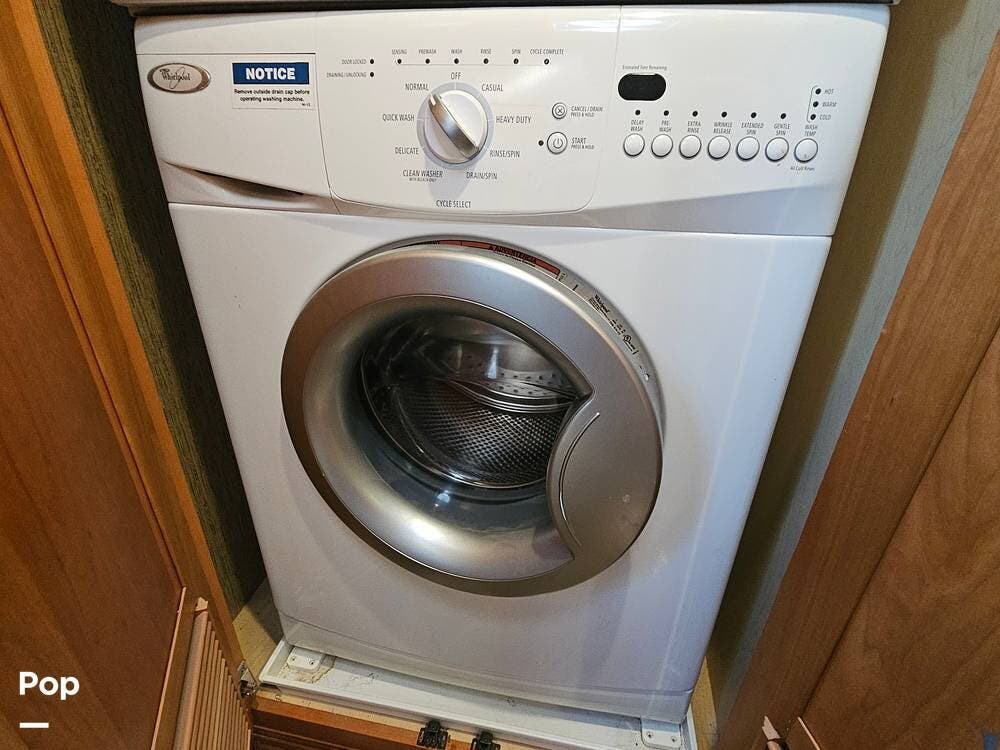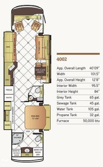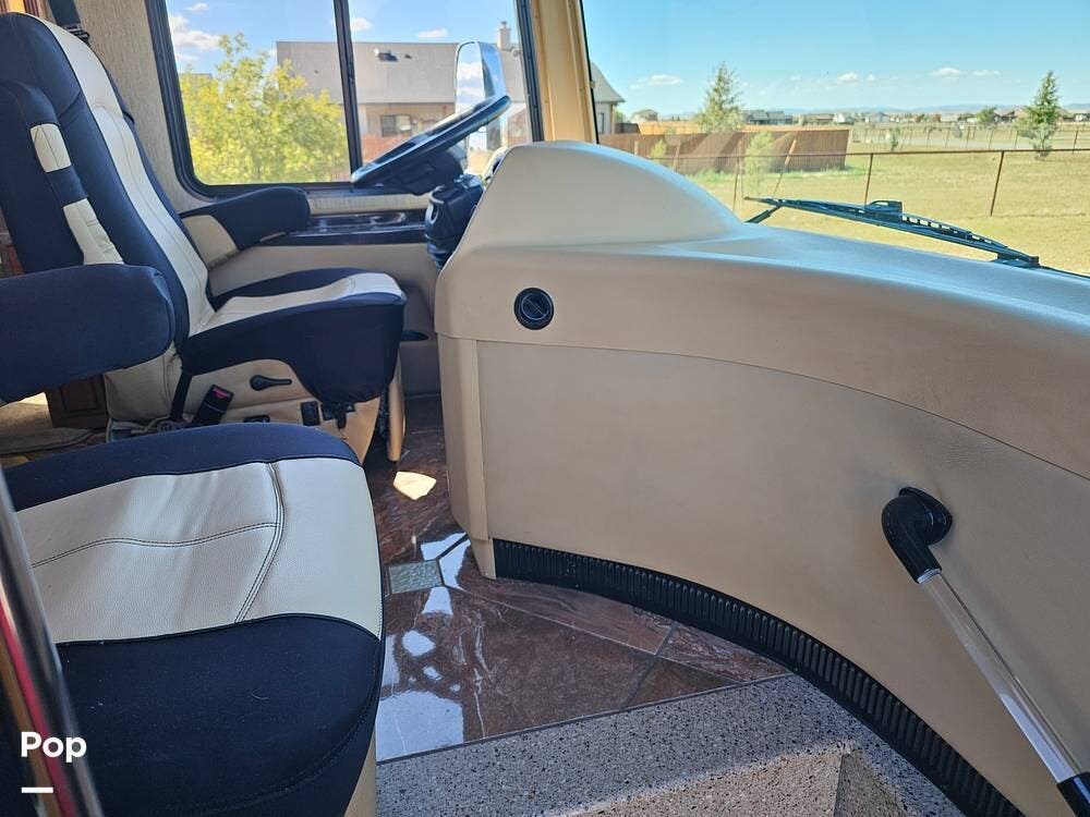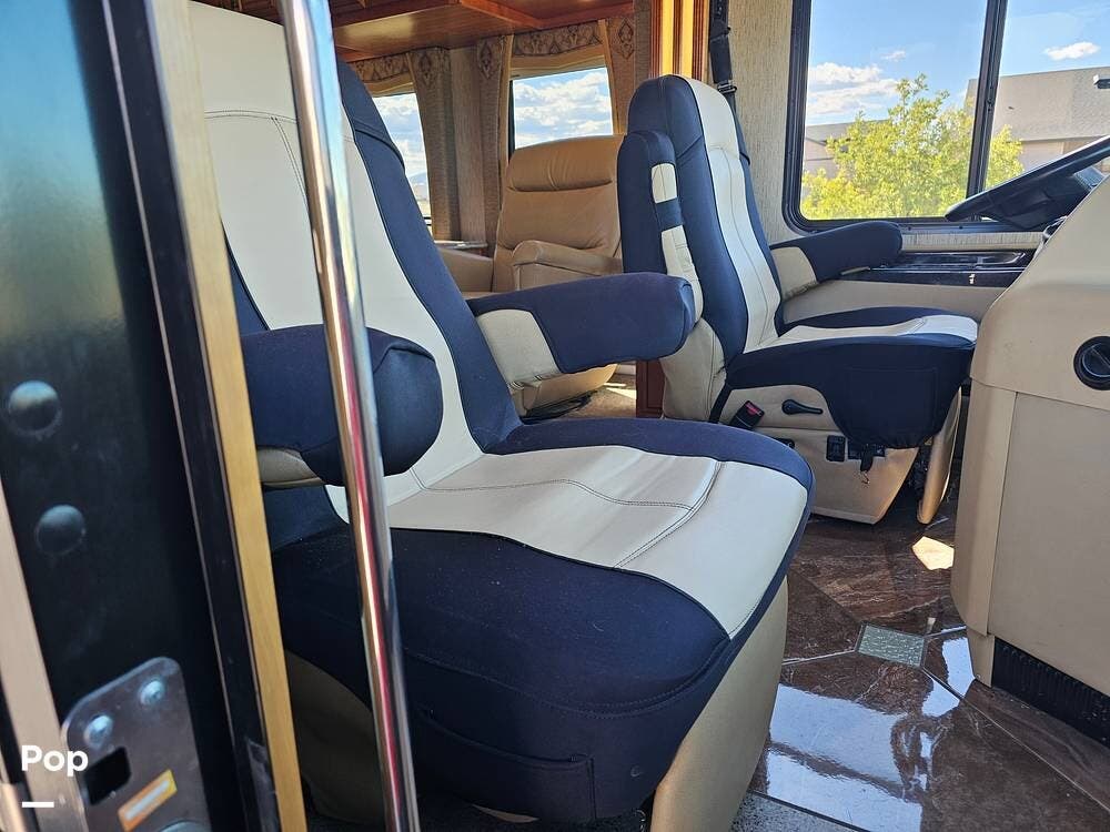 Beautiful 10-year-old 40' luxury diesel pusher with tag axle needs nothing to start your own adventures. As you walk in, the first thing you see is the gorgeous rosewood upgraded cabinetry and the shiny tile flooring open up a huge living area with opposing slide-outs.