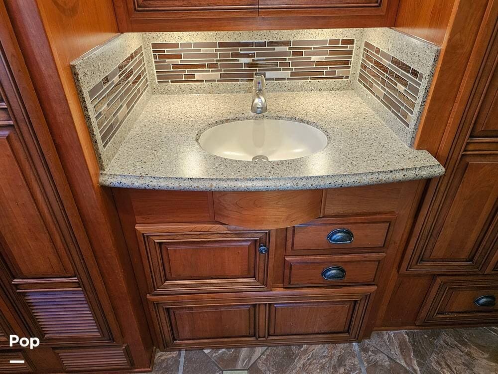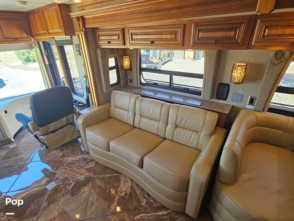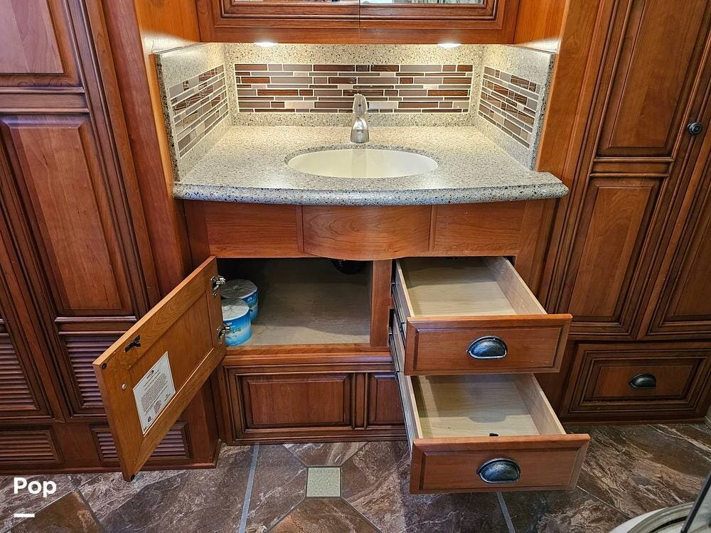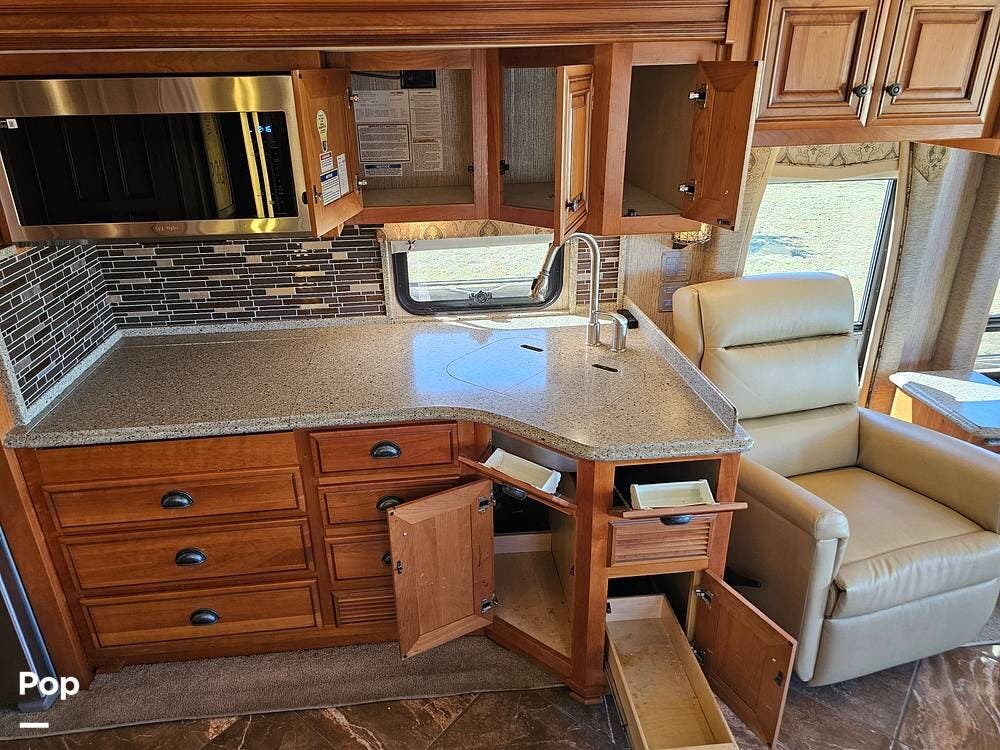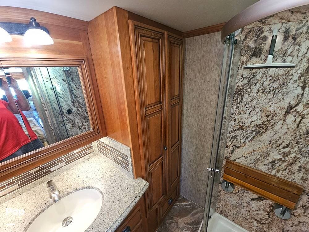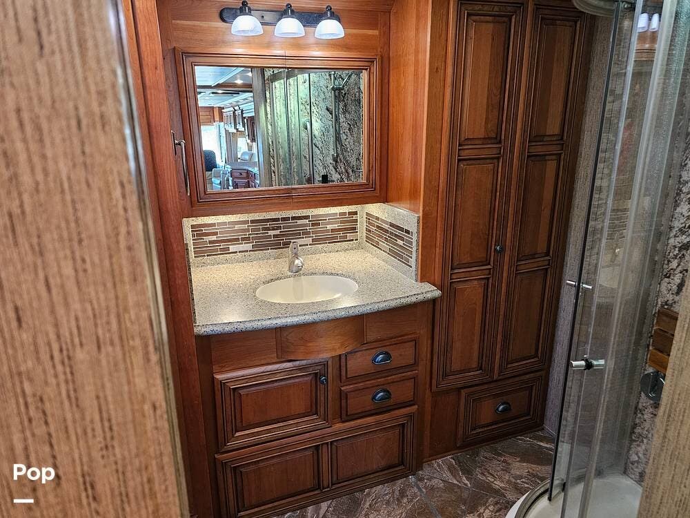 Beautiful 10-year-old 40' luxury diesel pusher with tag axle needs nothing to start your own adventures. As you walk in, the first thing you see is the gorgeous rosewood upgraded cabinetry and the shiny tile flooring open up a huge living area with opposing slide-outs.