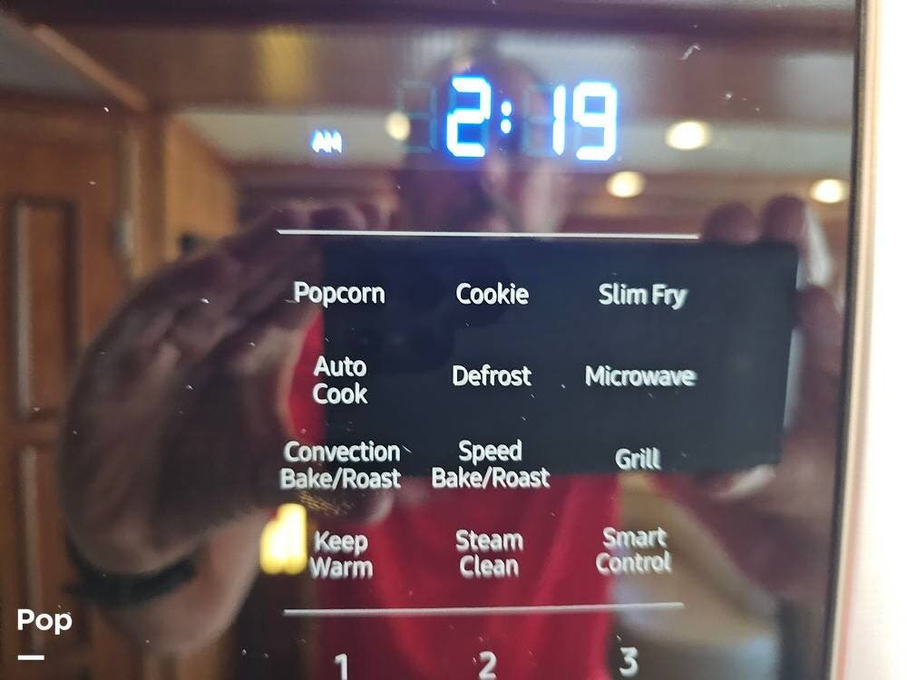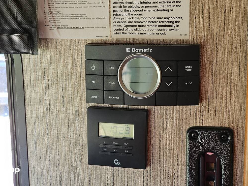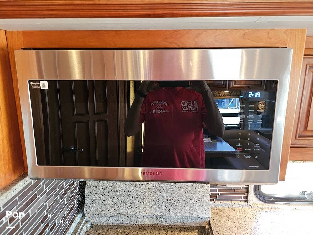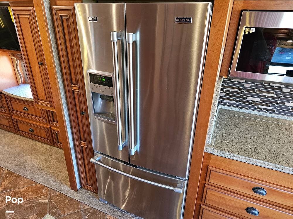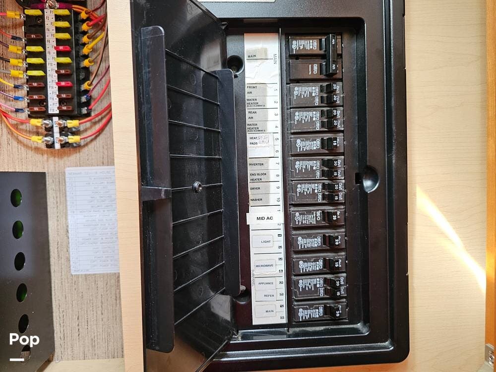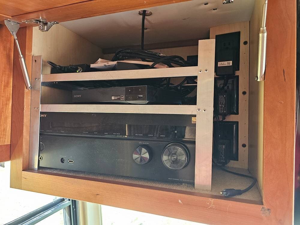 The upgraded residential fridge added an inverter and two extra coach batteries to ensure it keeps your items while driving down the road, waiting to connect to shore power or start the 8,000-watt generator. With three air conditioners, you should stay nice and cool.