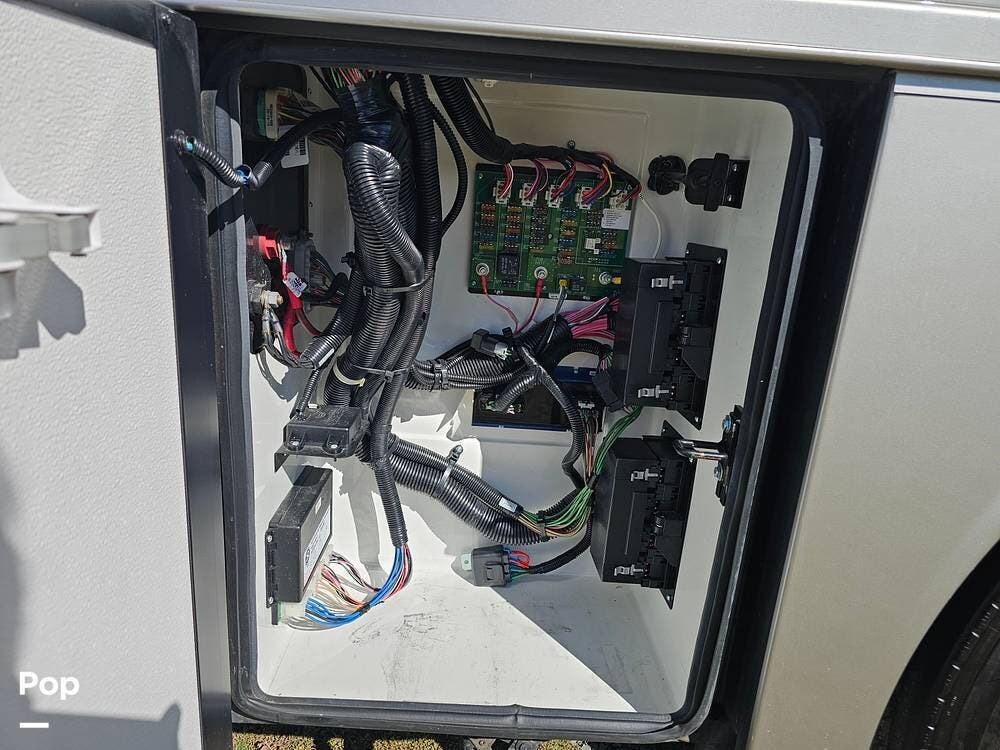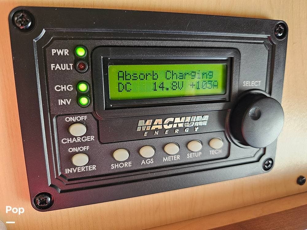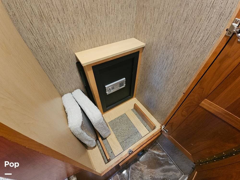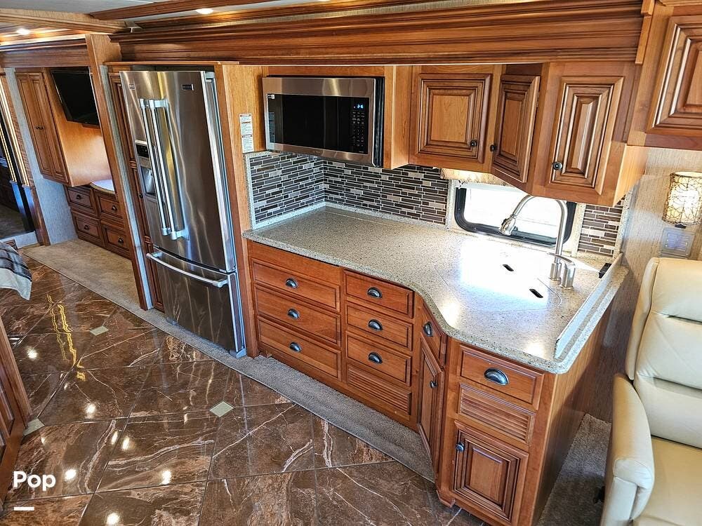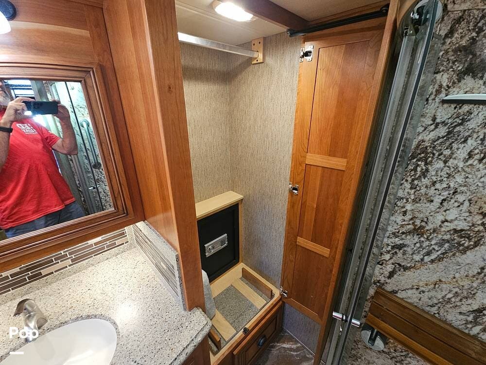 The upgraded residential fridge added an inverter and two extra coach batteries to ensure it keeps your items while driving down the road, waiting to connect to shore power or start the 8,000-watt generator. With three air conditioners, you should stay nice and cool.