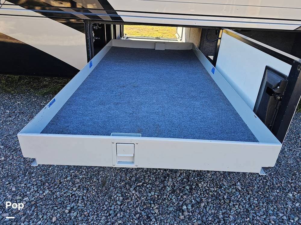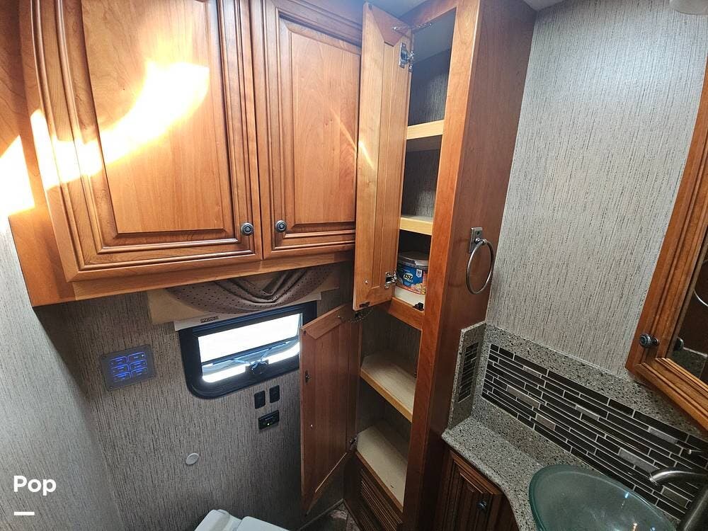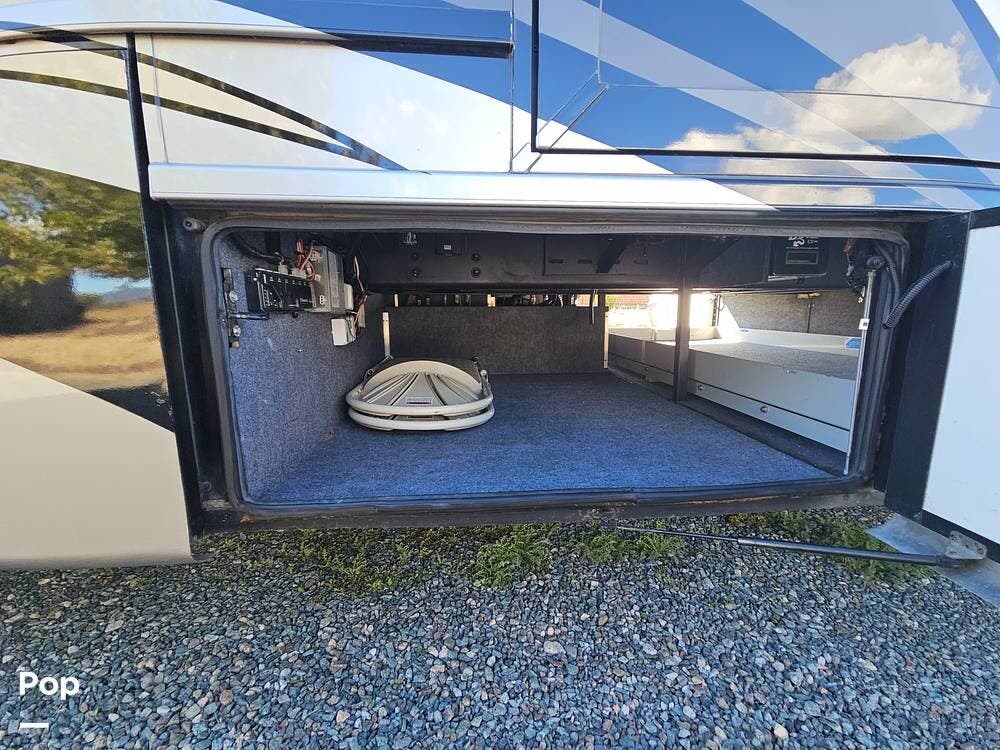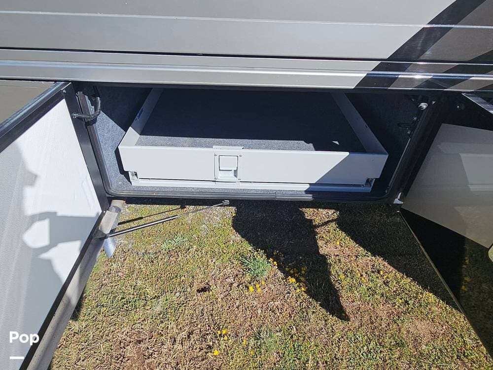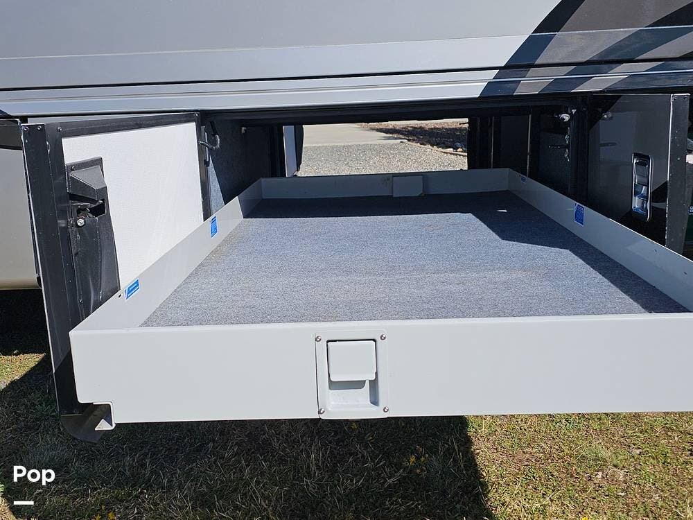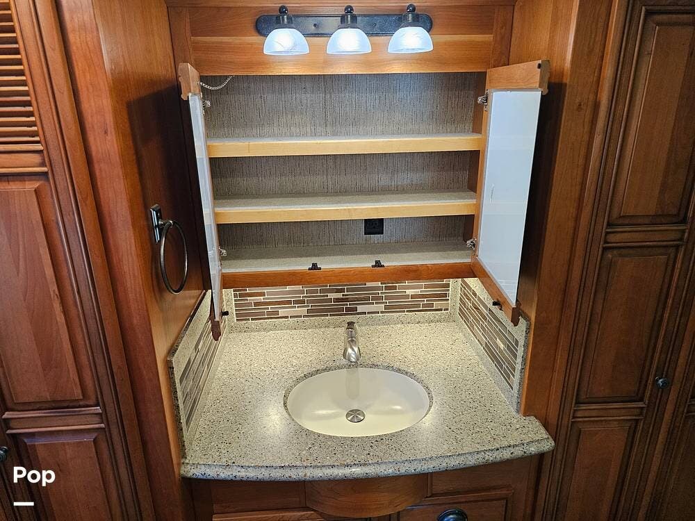 The upgraded residential fridge added an inverter and two extra coach batteries to ensure it keeps your items while driving down the road, waiting to connect to shore power or start the 8,000-watt generator. With three air conditioners, you should stay nice and cool.
