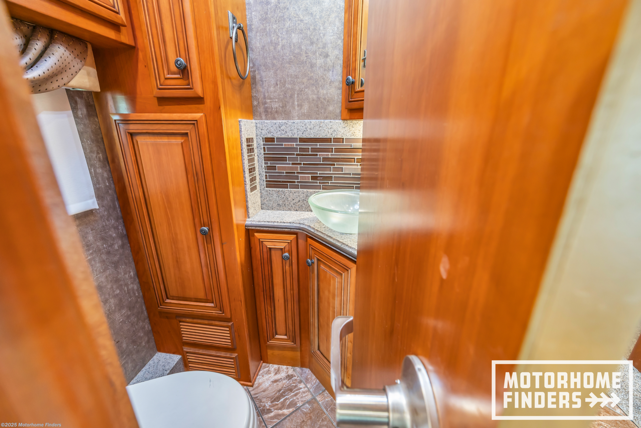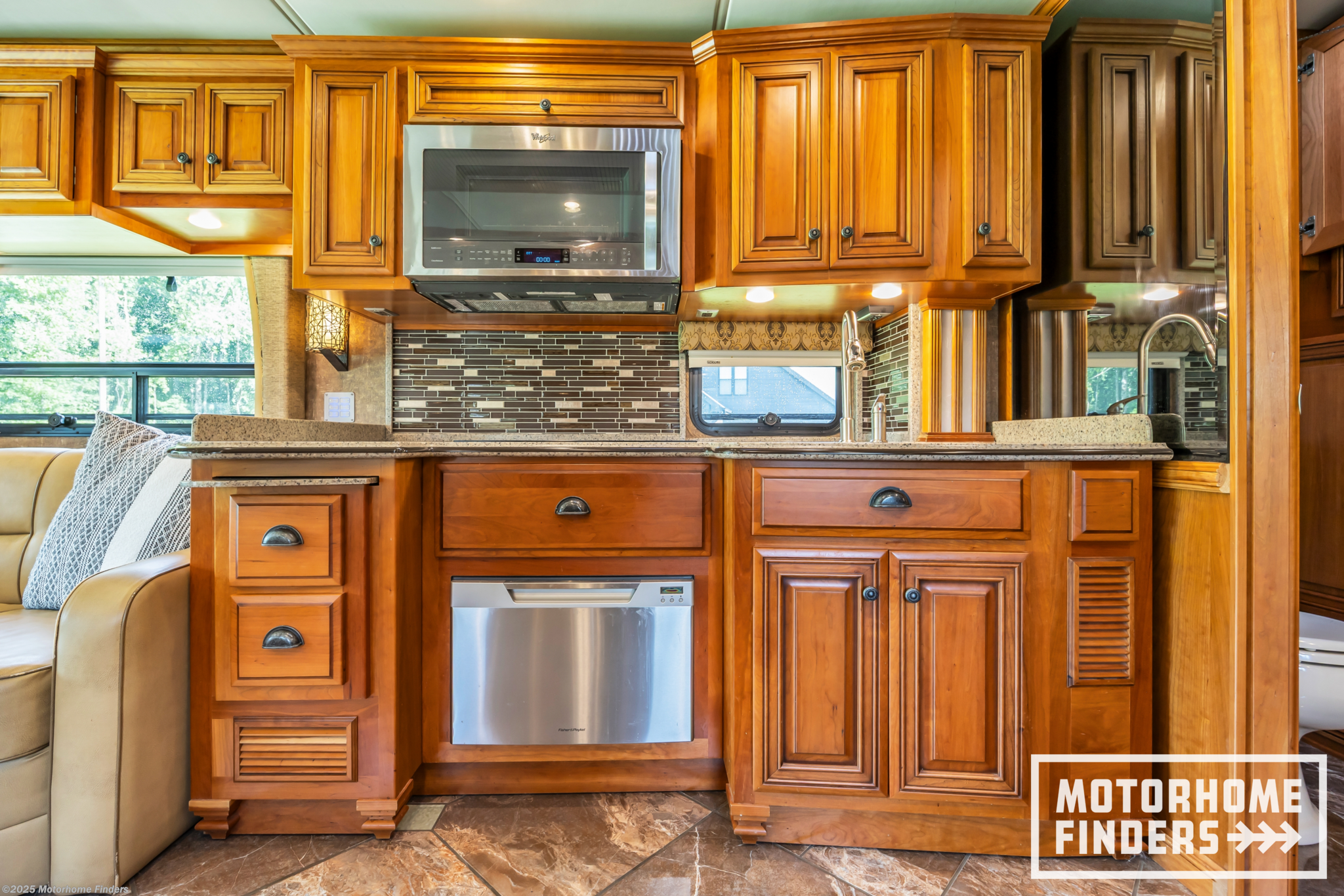 Cordova Décor with Carmel Glazed Cherry Cabinetry – Warm, residential styling with handcrafted Newmar woodwork.