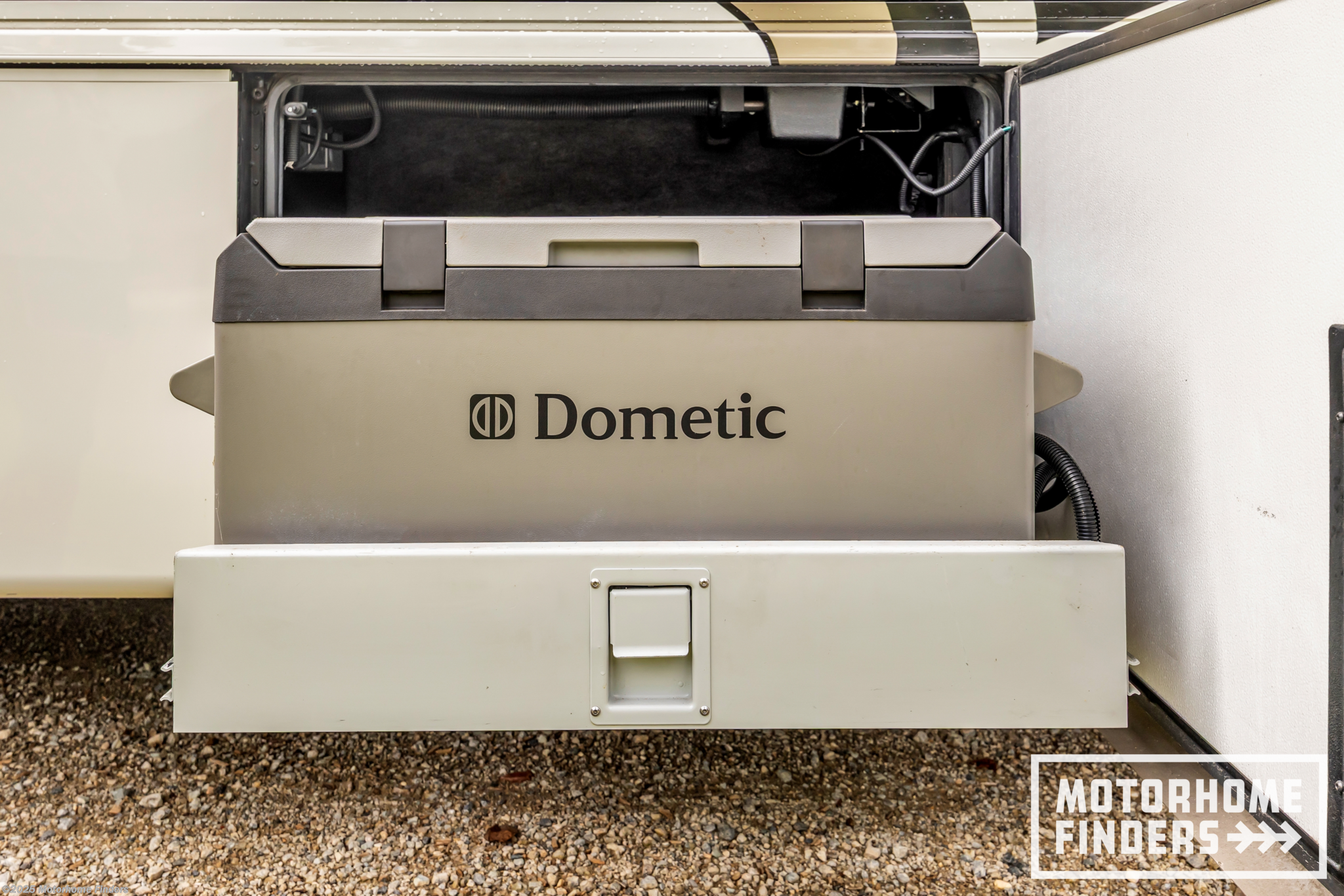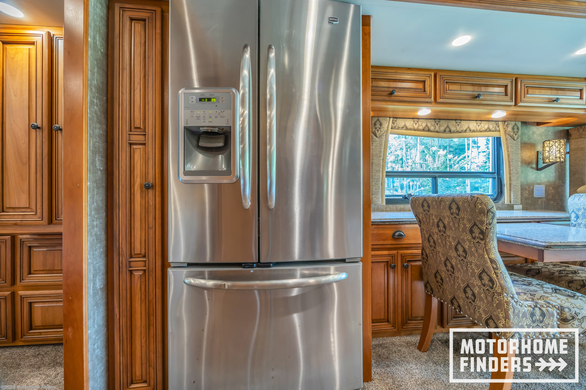 Residential Whirlpool Refrigerator + Dometic 2.8 Freezer on Slides – Ample cold storage for extended trips.