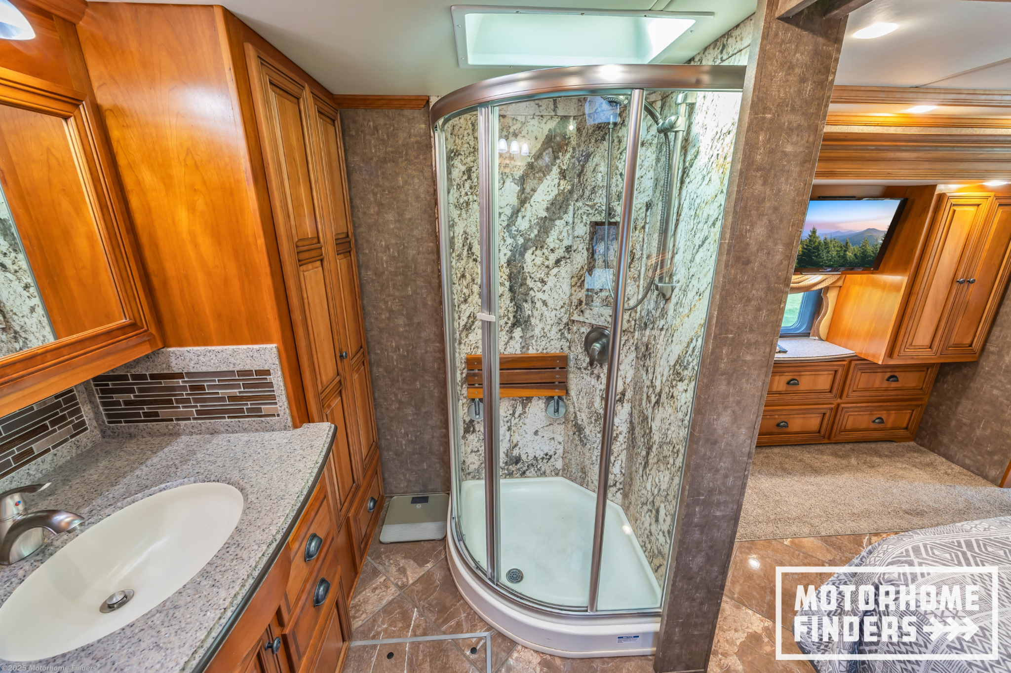 Bath & 1/2, Day/Night Shades, Fireplace, Free Standing Dinette w/Chairs, Heated Floor, King Size Bed, Medicine Cabinet, Rocker Recliner(s), Roof Vents, Self Contained, Shower, Sofa Bed, Toilet