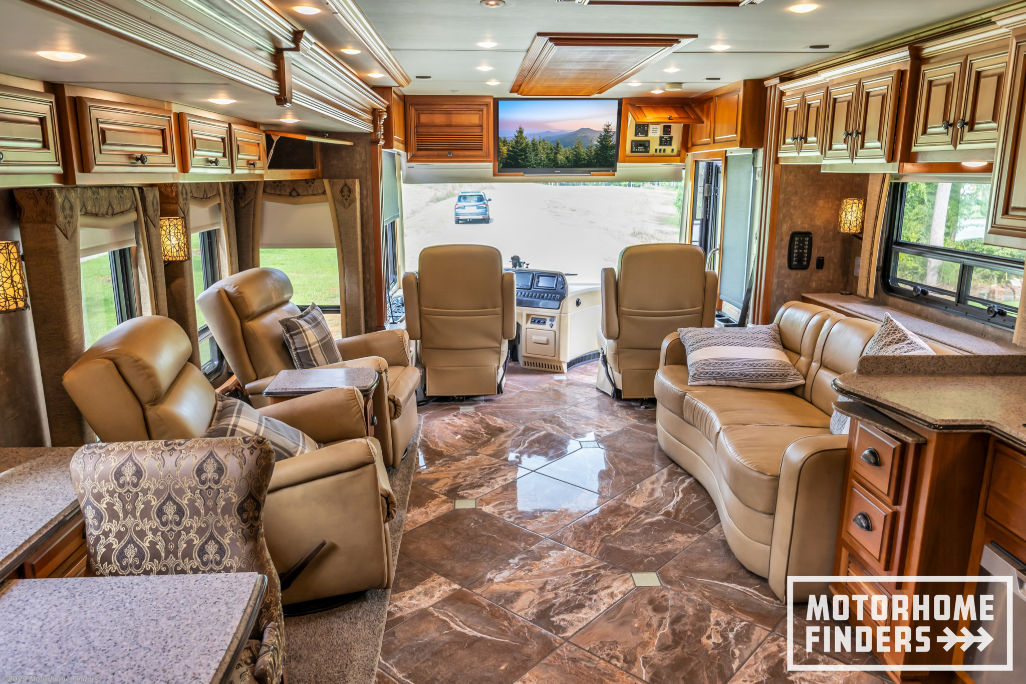 Villa Ultralux Leather Seating – Power captain’s chairs (heated) and sofa/recliners for ultimate comfort.