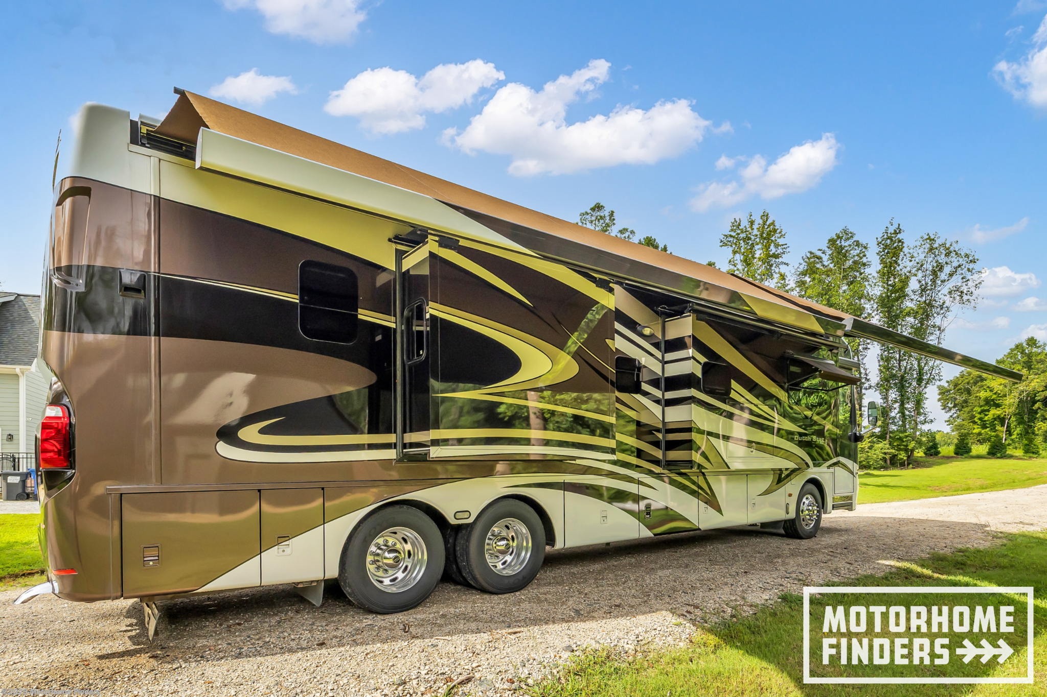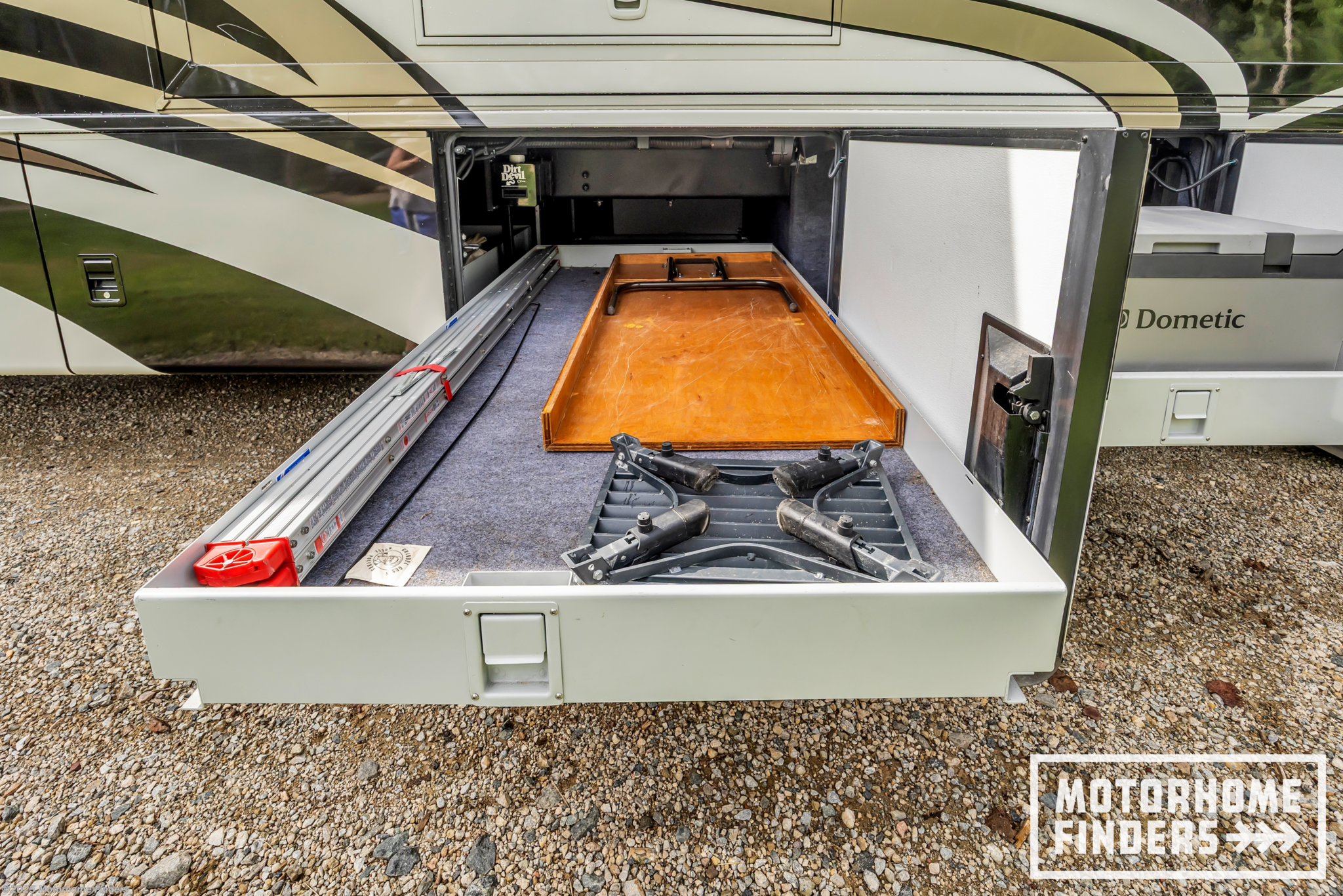 Air Assist Suspension, Alloy Wheels, Automatic Leveling Jacks, Awning, Backup Monitor, Black Tank Flush, External Shower, Full Body Paint, Hitch, Ladder, Leveling Jacks, Outside Entertainment Center, Pass Thru Storage, Power Awning, Power Entrance Step, Power Roof Vent, Second Roof A/C, Side View Cameras, Skylight, Slideout, Slide-out Awning -