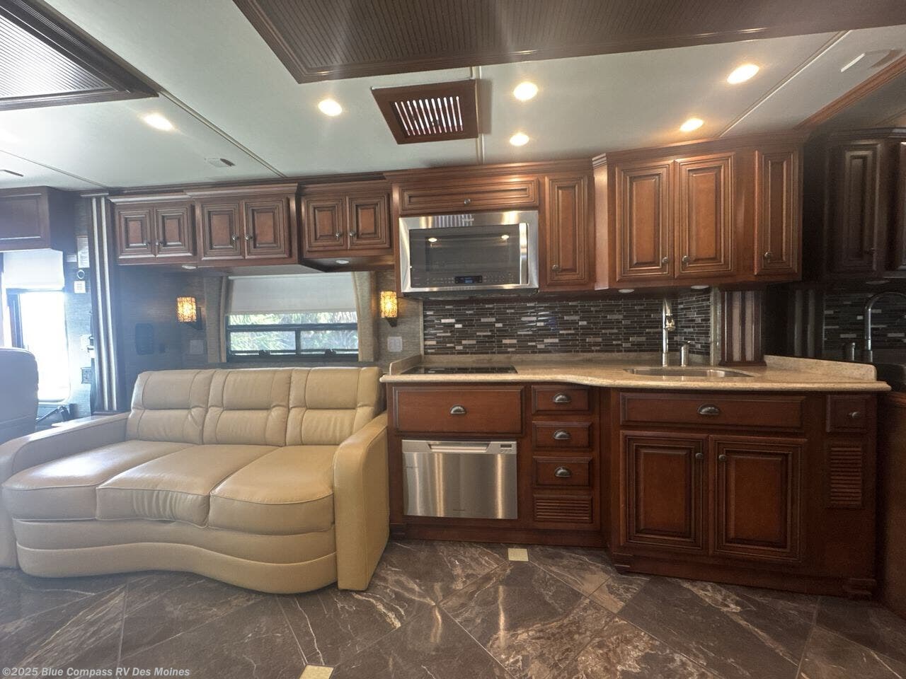 Stepping inside the Dutch Star 4366 motor home by Newmar you will find a full wall slide and a bath and a half.