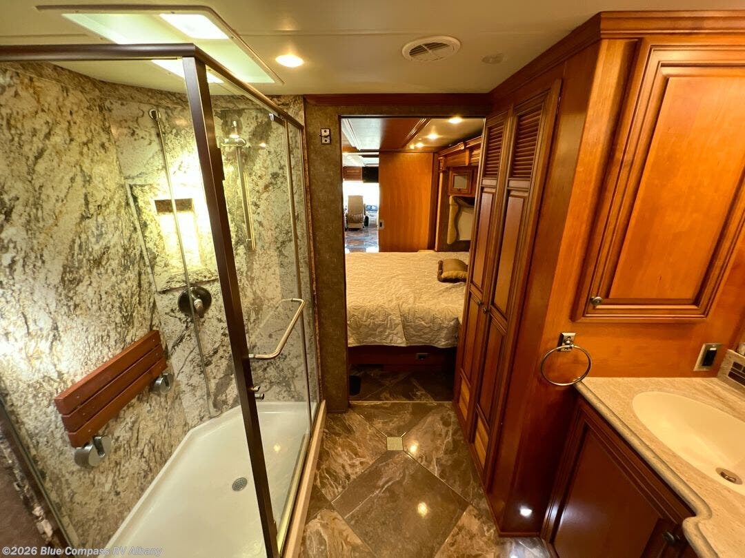 The Dutch Star 4369 motor home by Newmar offers triple slides and a bath and a half.