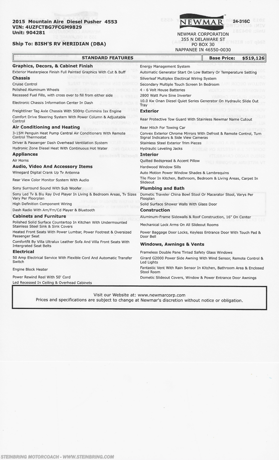 Request More Info on this 2015 Newmar Mountain Aire 4553 Offered for sale by Steinbring Motorcoach