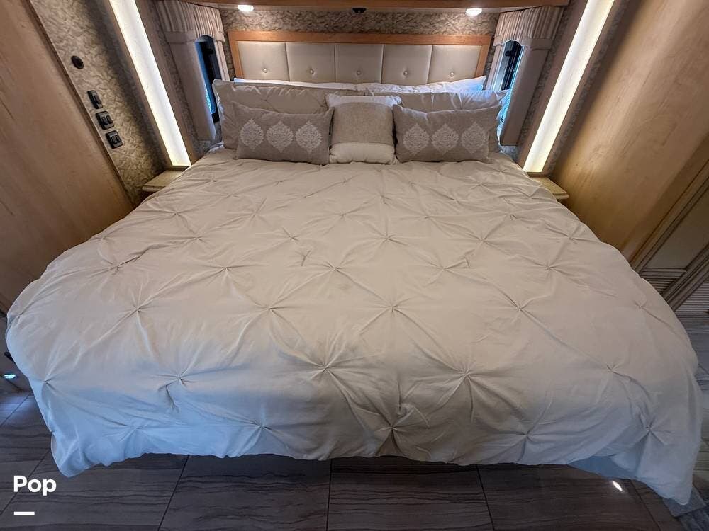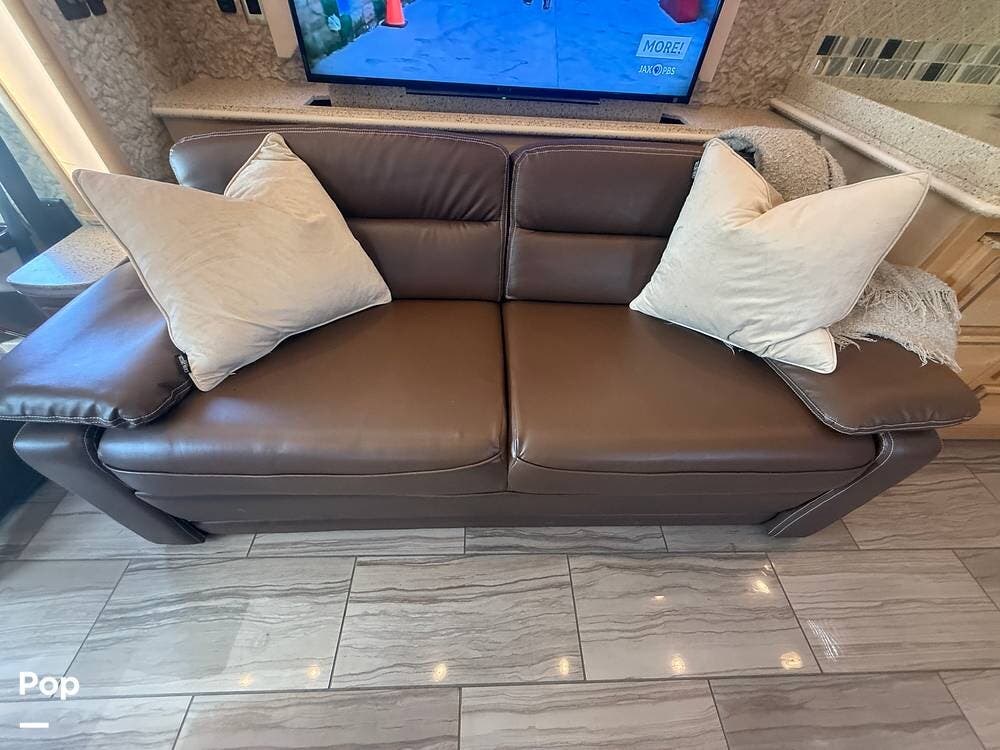 The 2015 Newmar Ventana 4369's interior has a homey vibe. Multiple slide-outs are possible due to the 43-foot length, which creates a spacious living area, a sizable kitchen, and a private primary bedroom.
