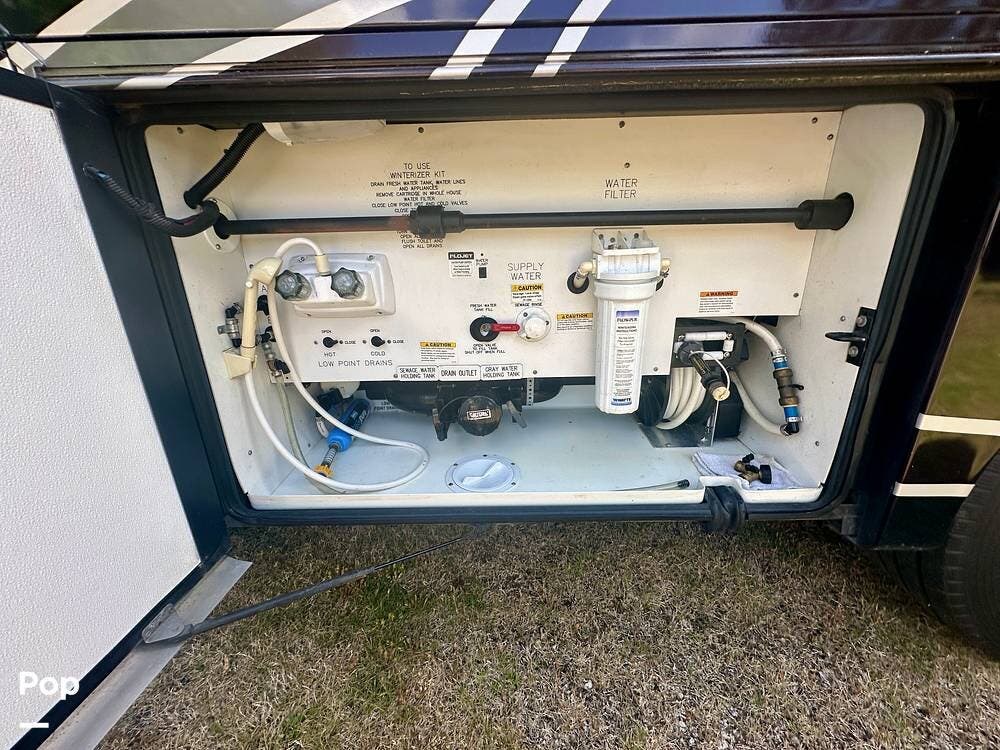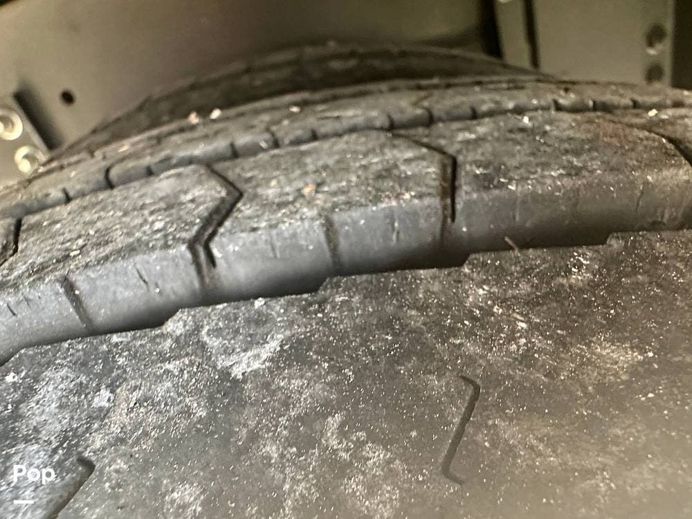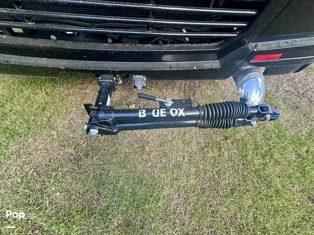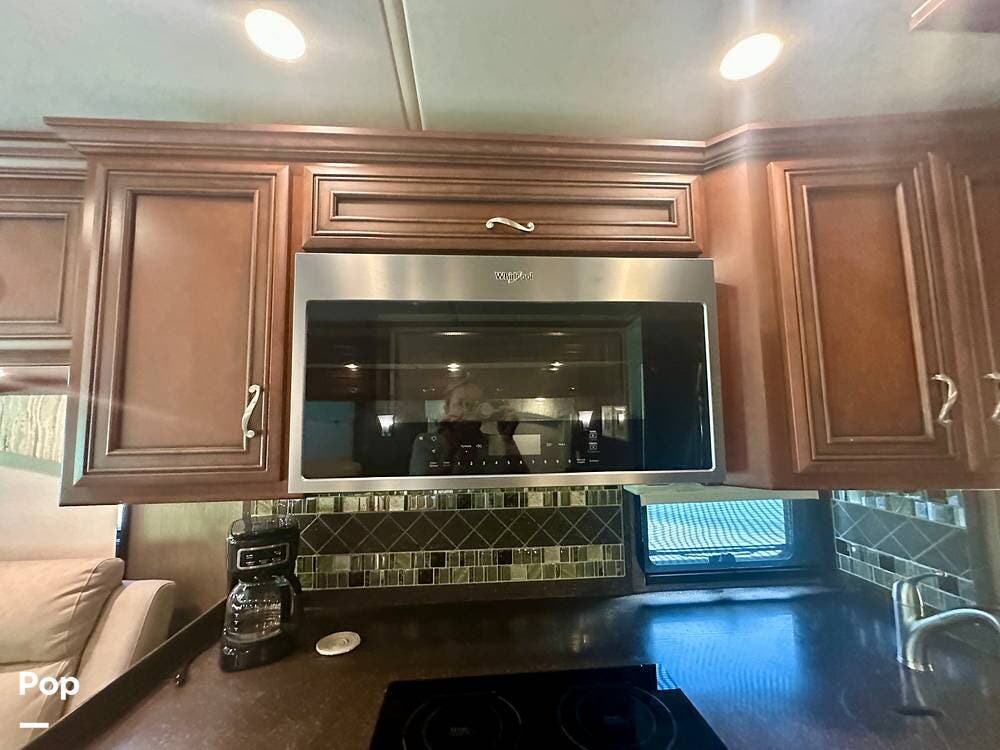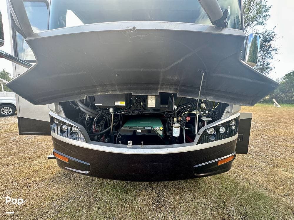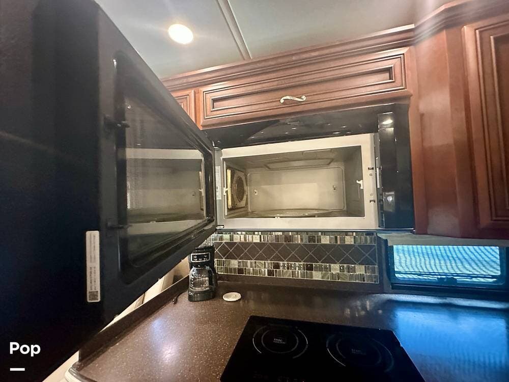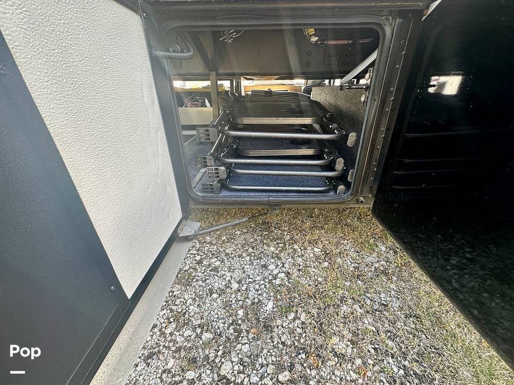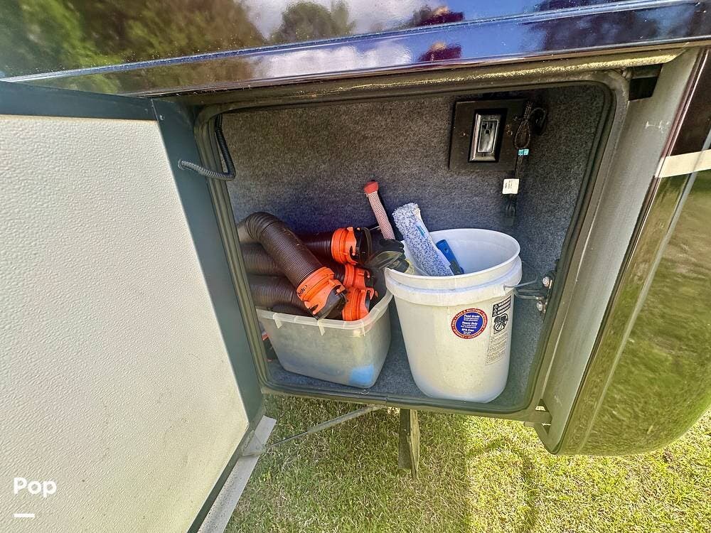 Outside, the experience continues with a power awning featuring wind-sensor protection and a removable sunshade, an exterior shower, a hitch, tire covers, and abundant basement storage. Snap Pads on the leveling jacks, a built-in surge guard power-protection system, a tire-monitoring system, and eight Toyo tires paired with eight Interstate house batteries reflect the care and investment put into this coach. Enjoy watching your favorite sports on the external TV.