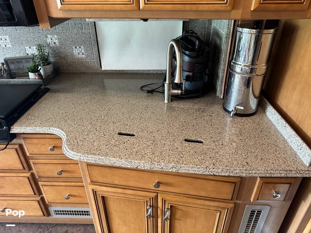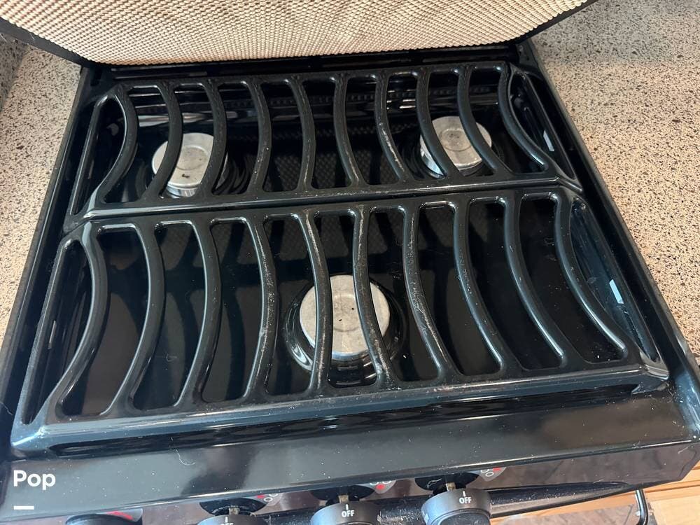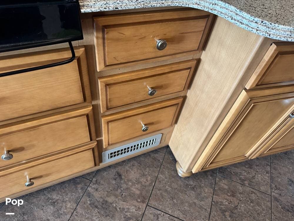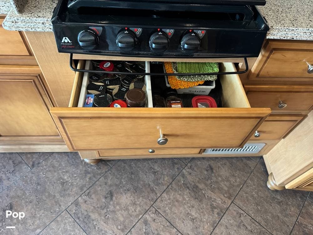 The kitchen is designed for true culinary convenience, with solid-surface countertops, a three-burner gas cooktop, a convection microwave, and a residential refrigerator. Plenty of pantry and drawer storage means you can bring all your favorite ingredients and cook with ease.