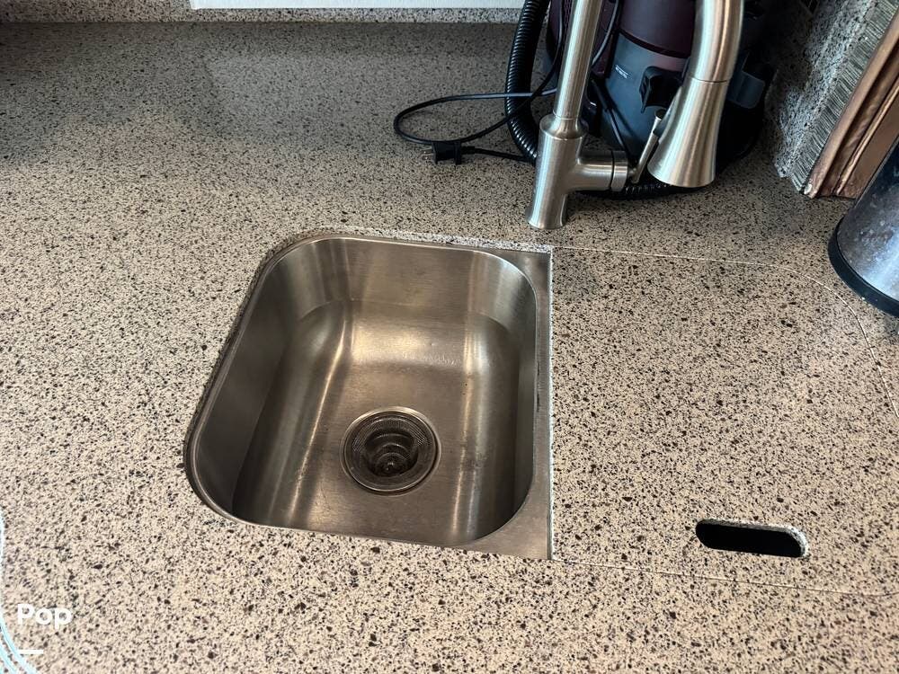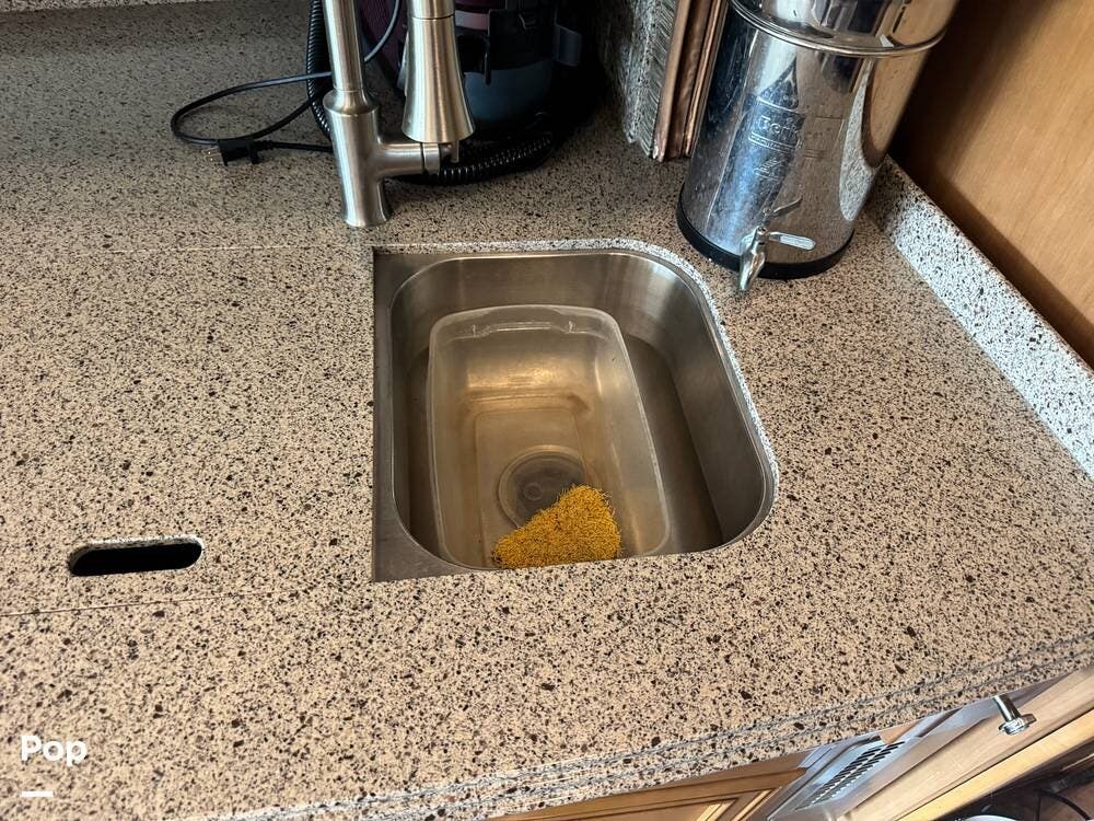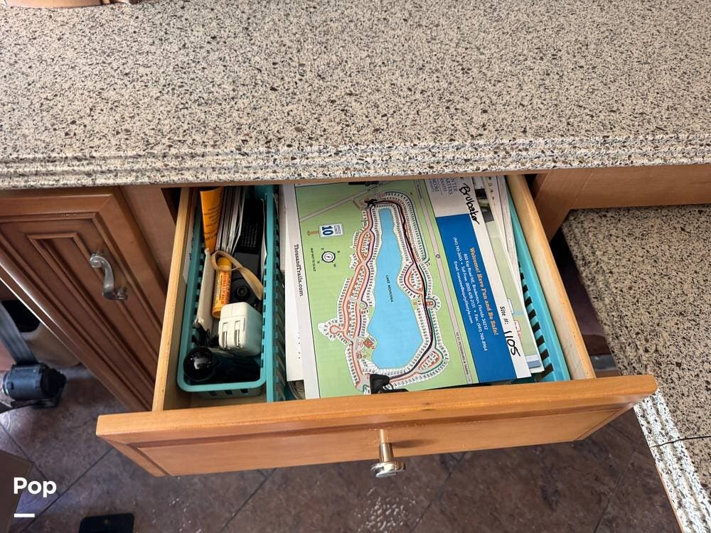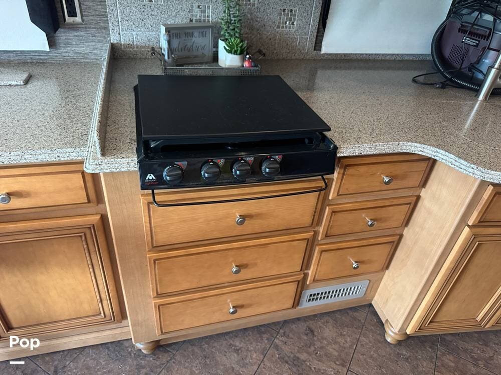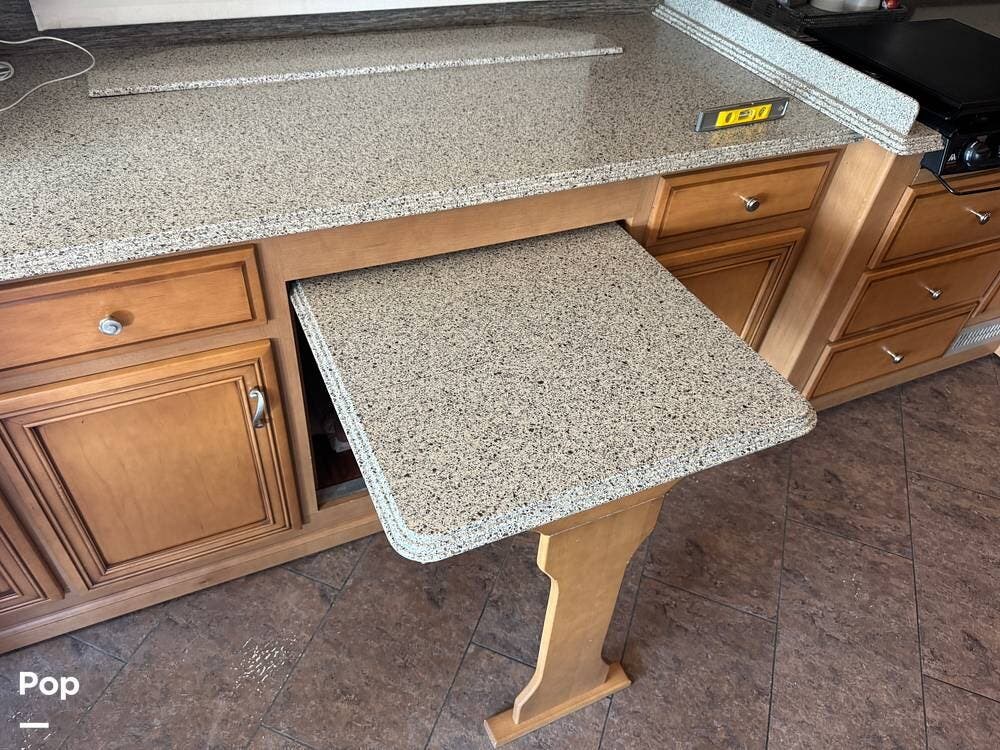 The kitchen is designed for true culinary convenience, with solid-surface countertops, a three-burner gas cooktop, a convection microwave, and a residential refrigerator. Plenty of pantry and drawer storage means you can bring all your favorite ingredients and cook with ease.