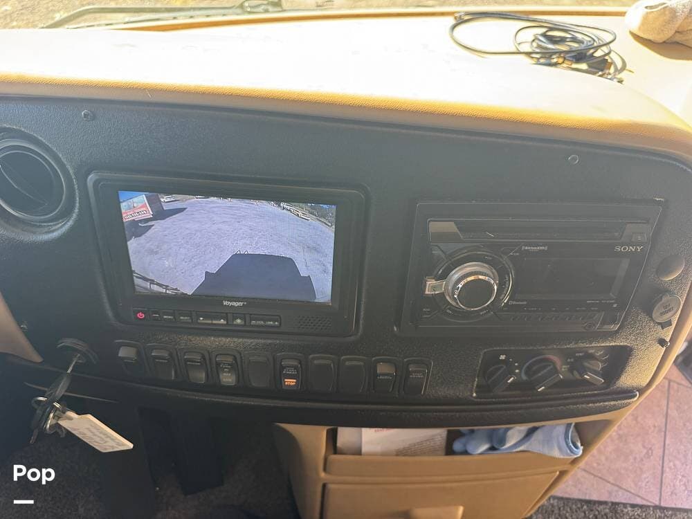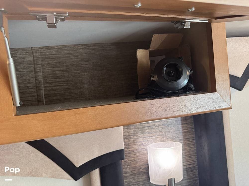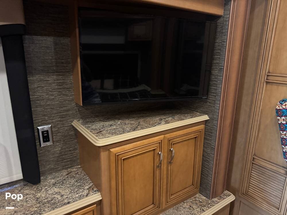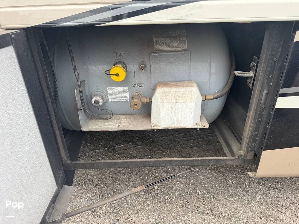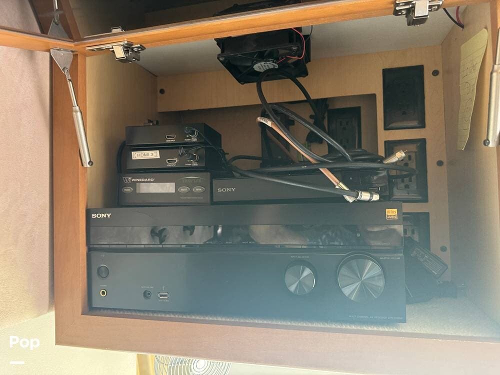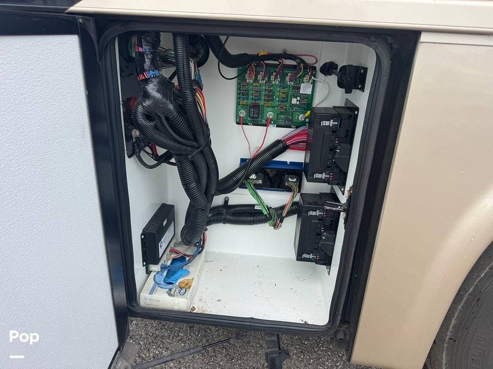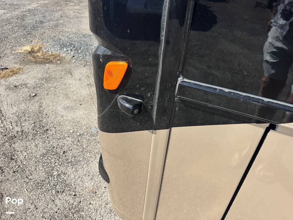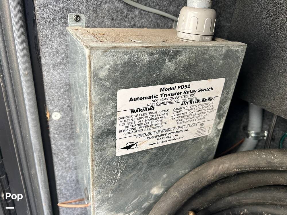 50-amp service with power reel, dual air conditioners with heat pumps, propane furnace and water heater, backup and side-view cameras, and the In-motion satellite, along with multiple TVs.