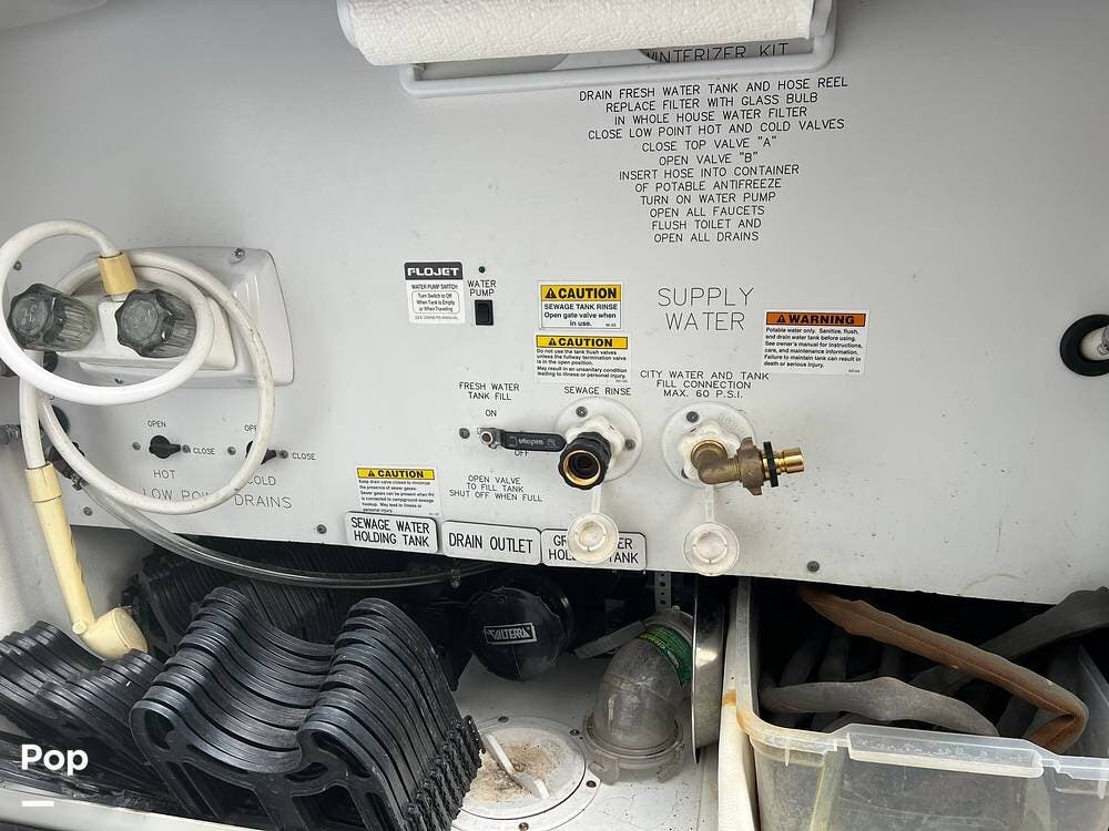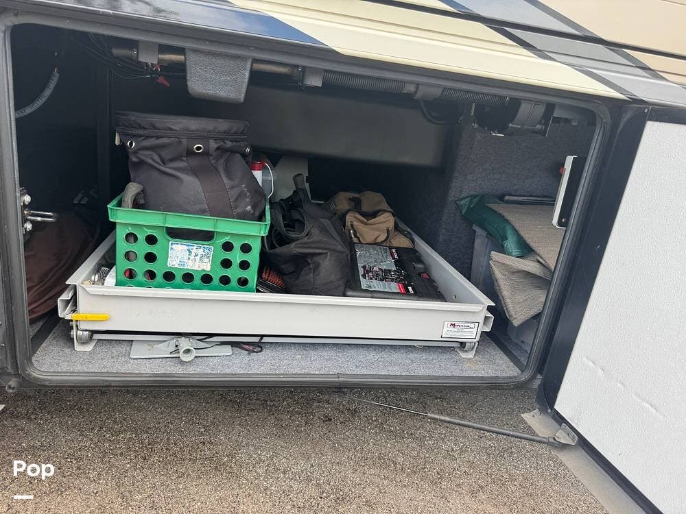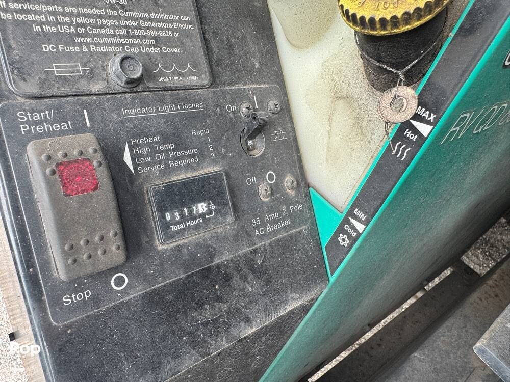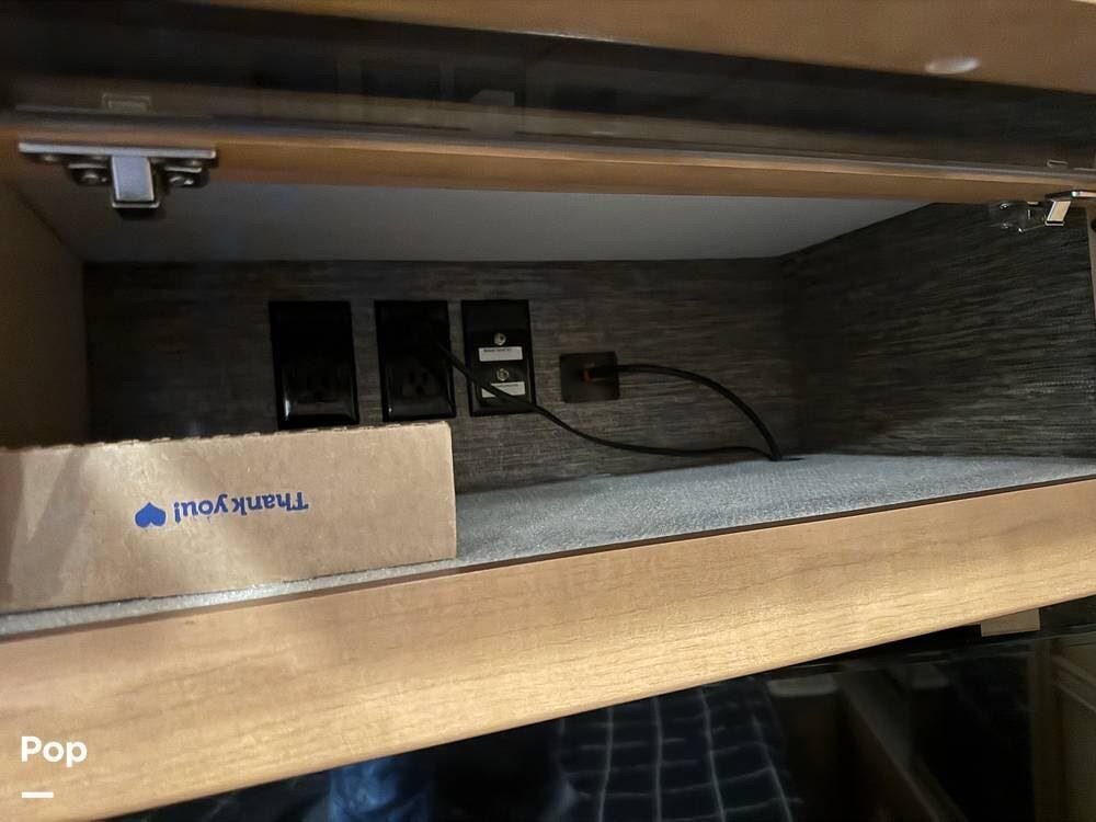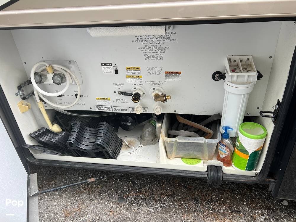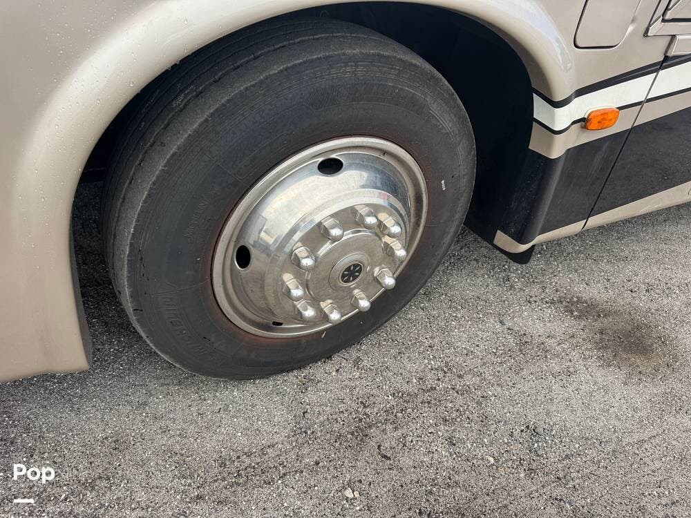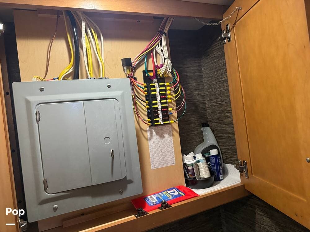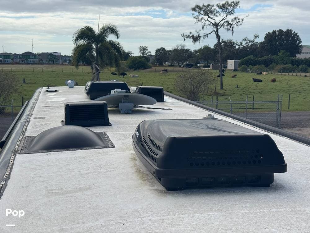 50-amp service with power reel, dual air conditioners with heat pumps, propane furnace and water heater, backup and side-view cameras, and the In-motion satellite, along with multiple TVs.