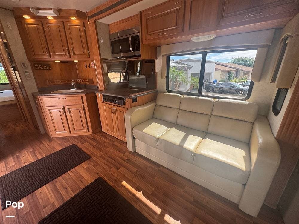 This Super C motorhome features a spacious and thoughtfully designed interior, ideal for families or couples seeking comfort on the road.