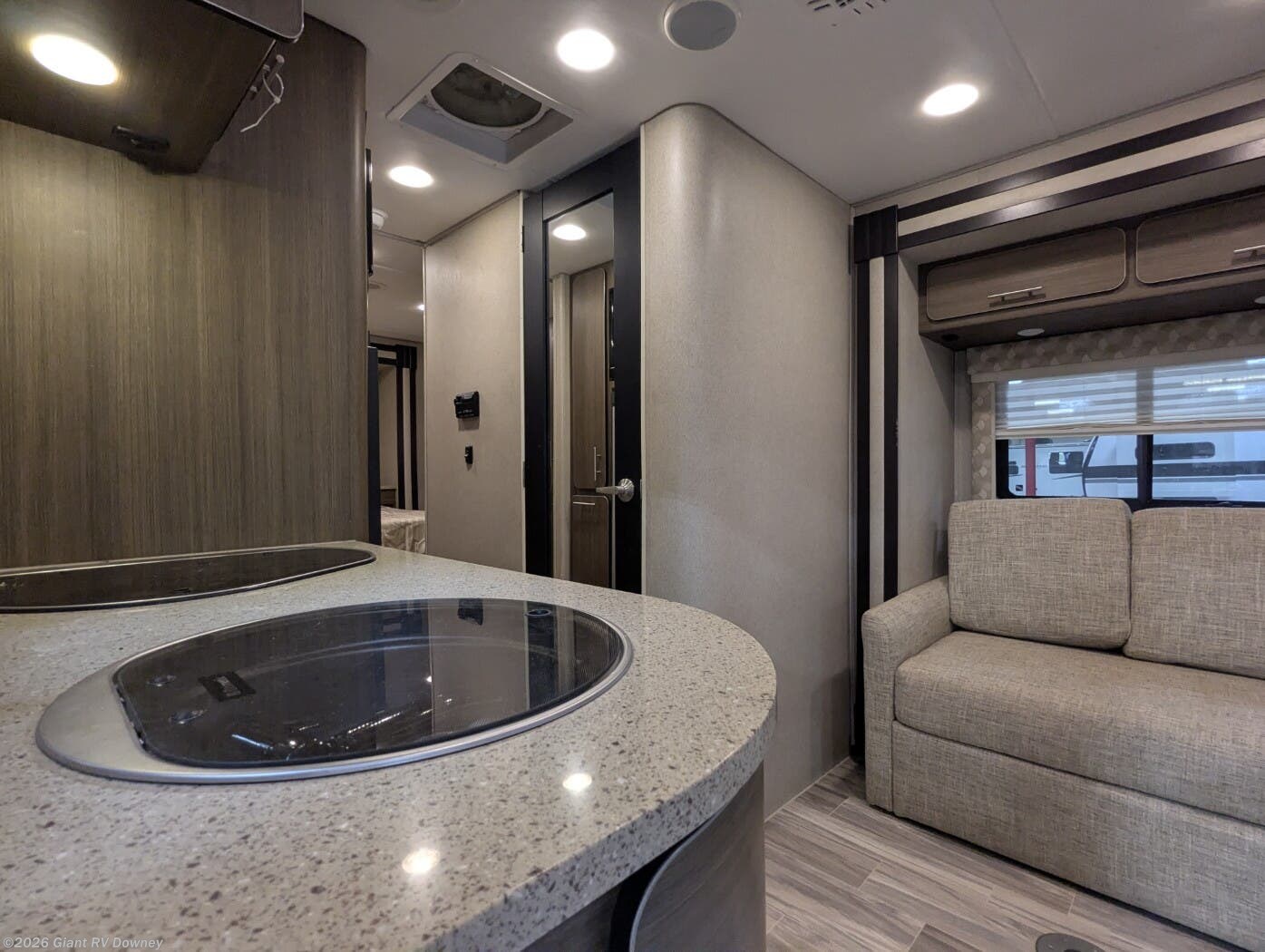 - Functional Galley & Bath with a well-equipped kitchen (three-burner cooktop, microwave, refrigerator), solid-surface countertops, ample storage, and a full bath with shower and linen space.