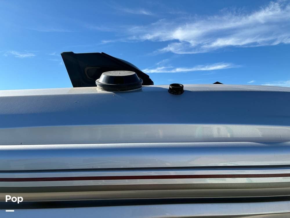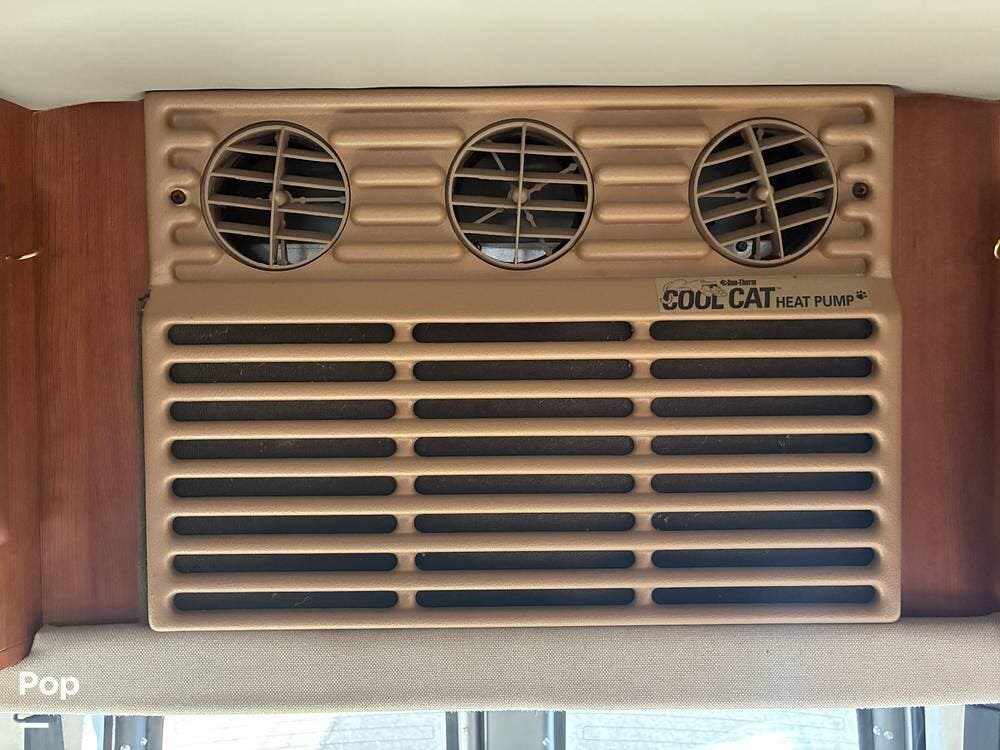 A passenger-side power awning extends the usable living area outdoors, and the coach is equipped with roof air conditioning and propane heat for comfortable travel in a variety of conditions.