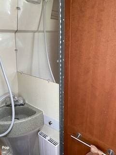 After passing by the permanent restroom with a stand-up shower in the galley, you will eventually come to your power leather sofa, which can be made into either two twin beds or a king-sized bed.