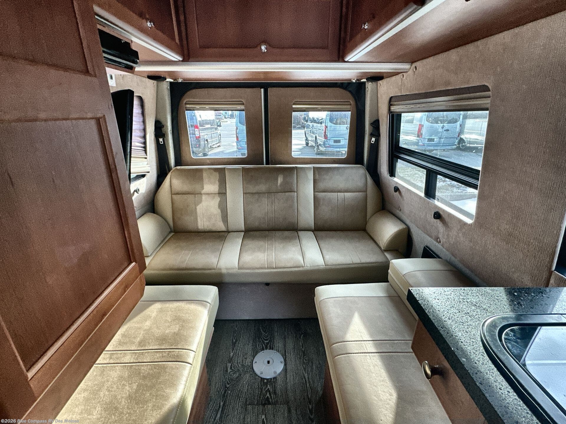 The RS-Adventurous by Roadtrek Class B diesel coach features a rear dinette with table and additional bench seating. Both will convert to twin beds or a king bed.