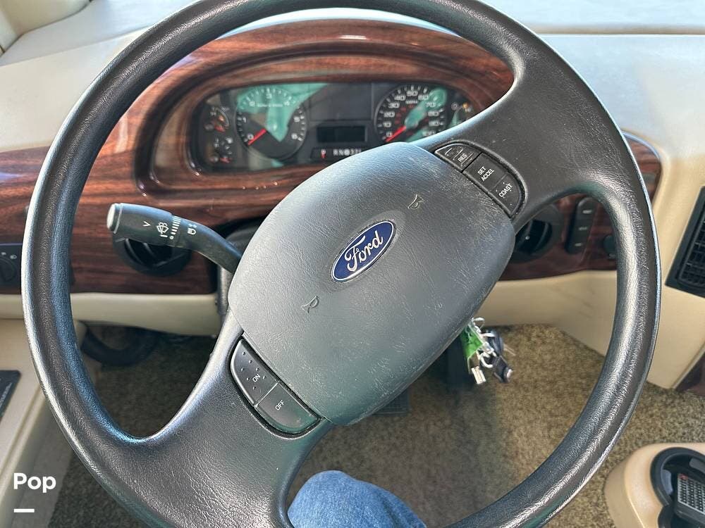 Enjoy the interior space when the large driver-side slide is fully extended. A Ford Triton V-10 engine powers the RV and has just 17,000 miles. It comes with an Onan 4.0kW generator.