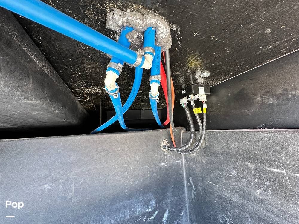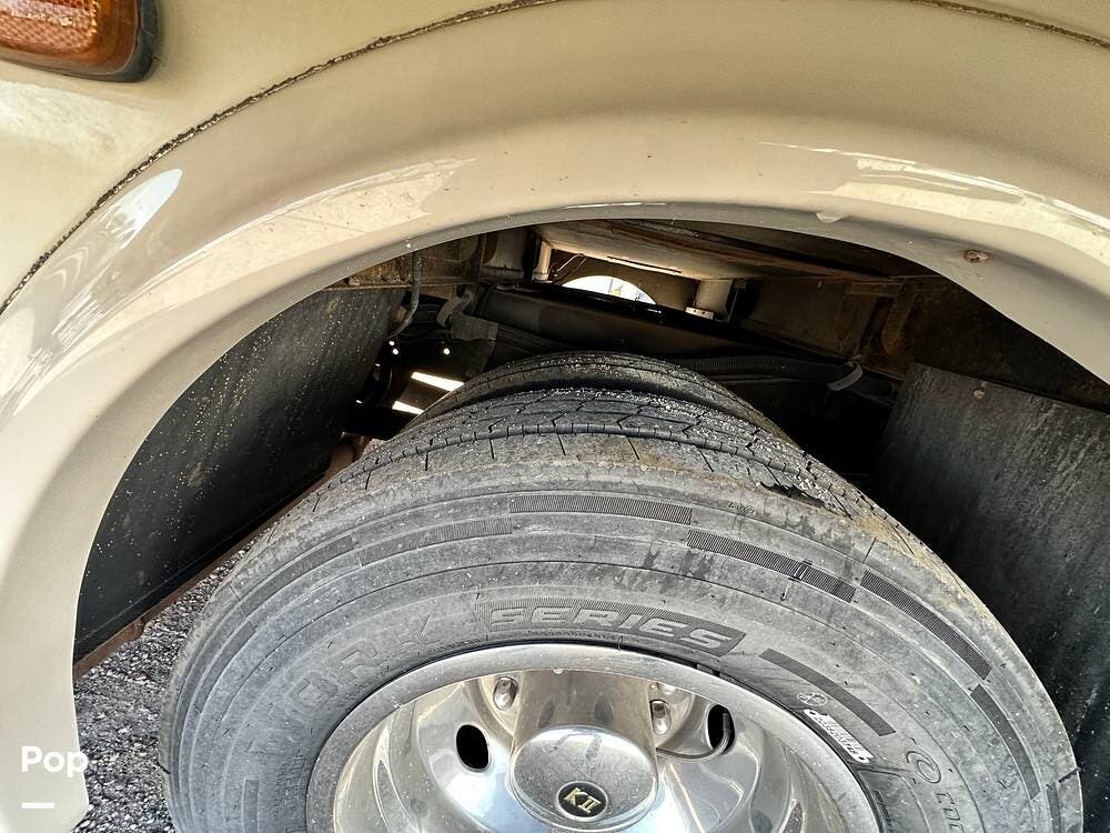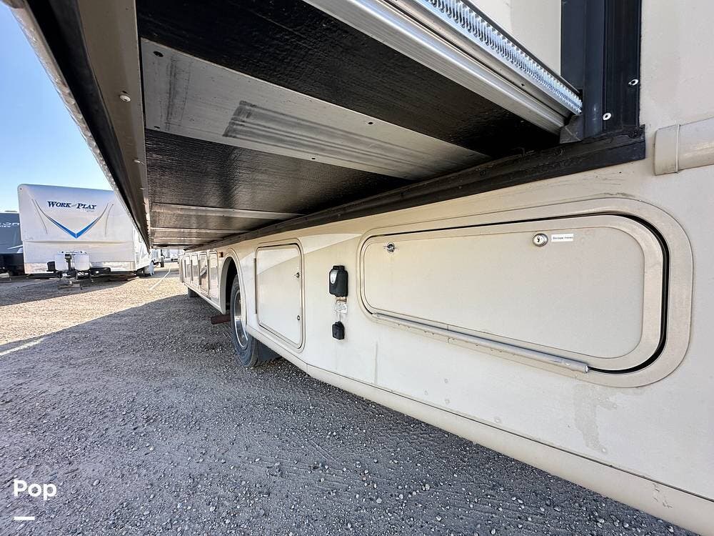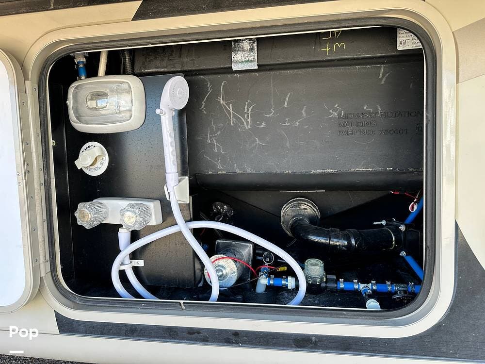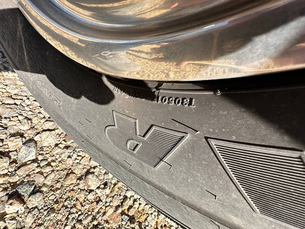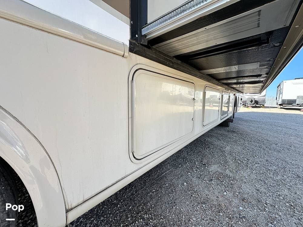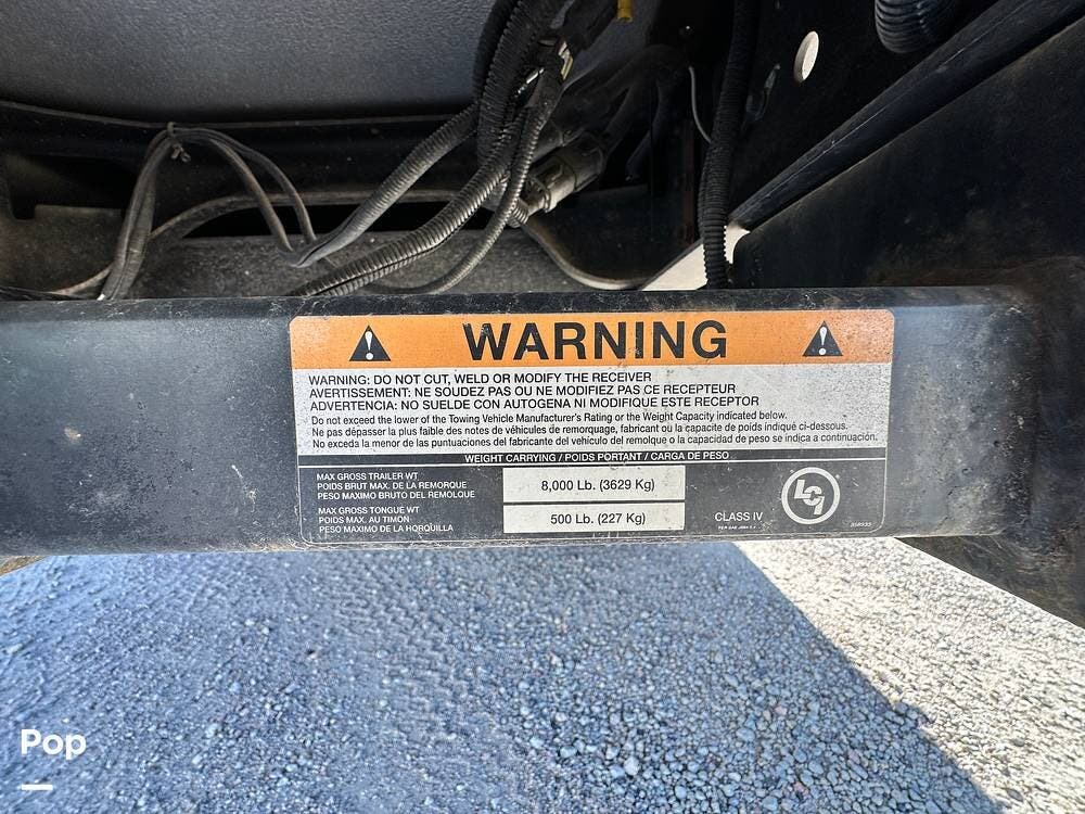 The exterior features are many and include a 4.0kW generator with 90 hours of run time, auto leveling, an outdoor fridge and sink, an outdoor TV, an outdoor shower, and a hitch with an 8,000 lb tow capacity.