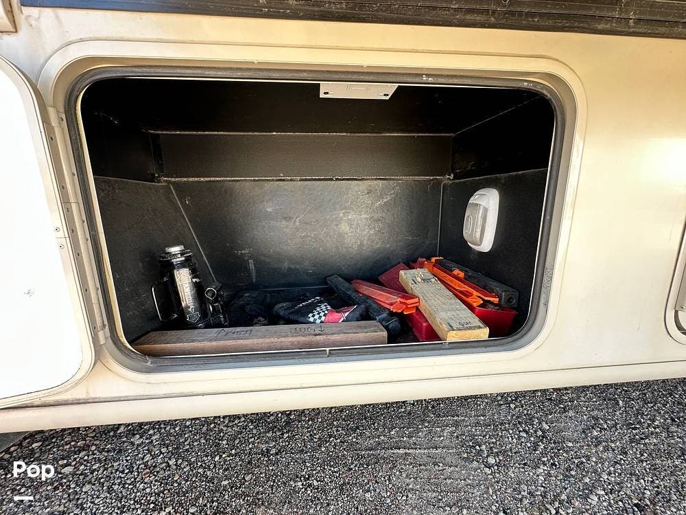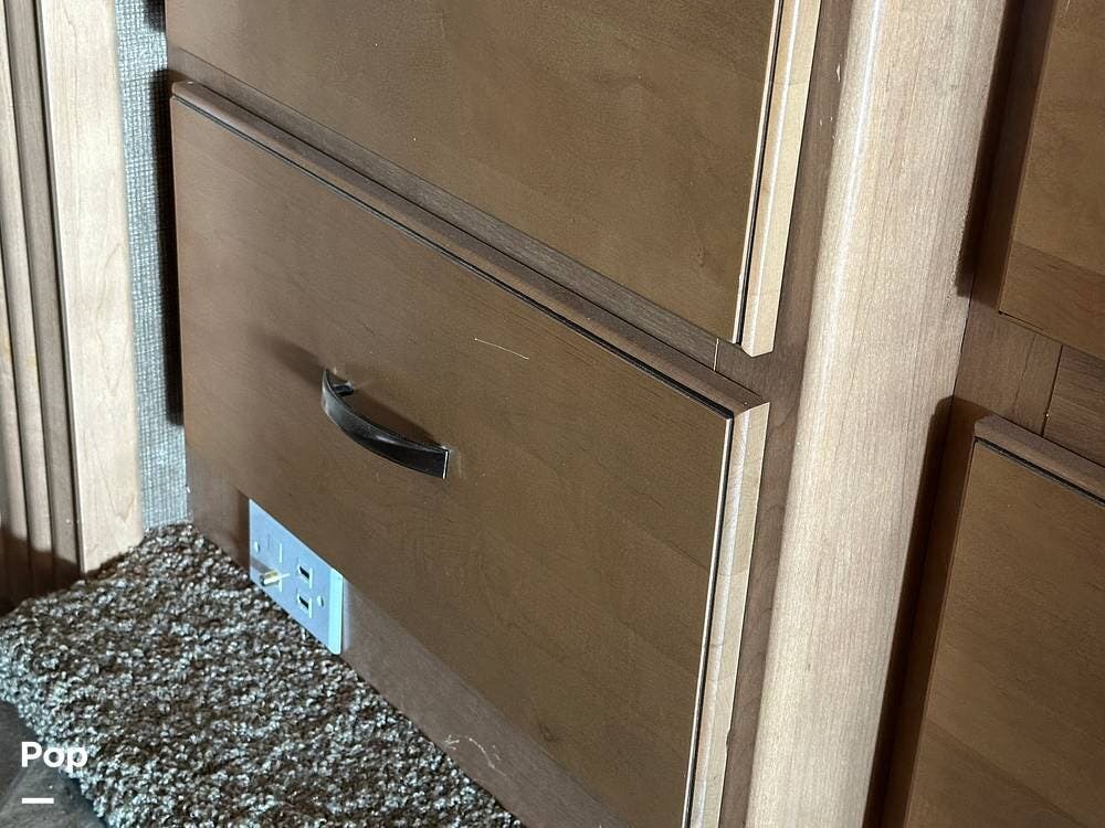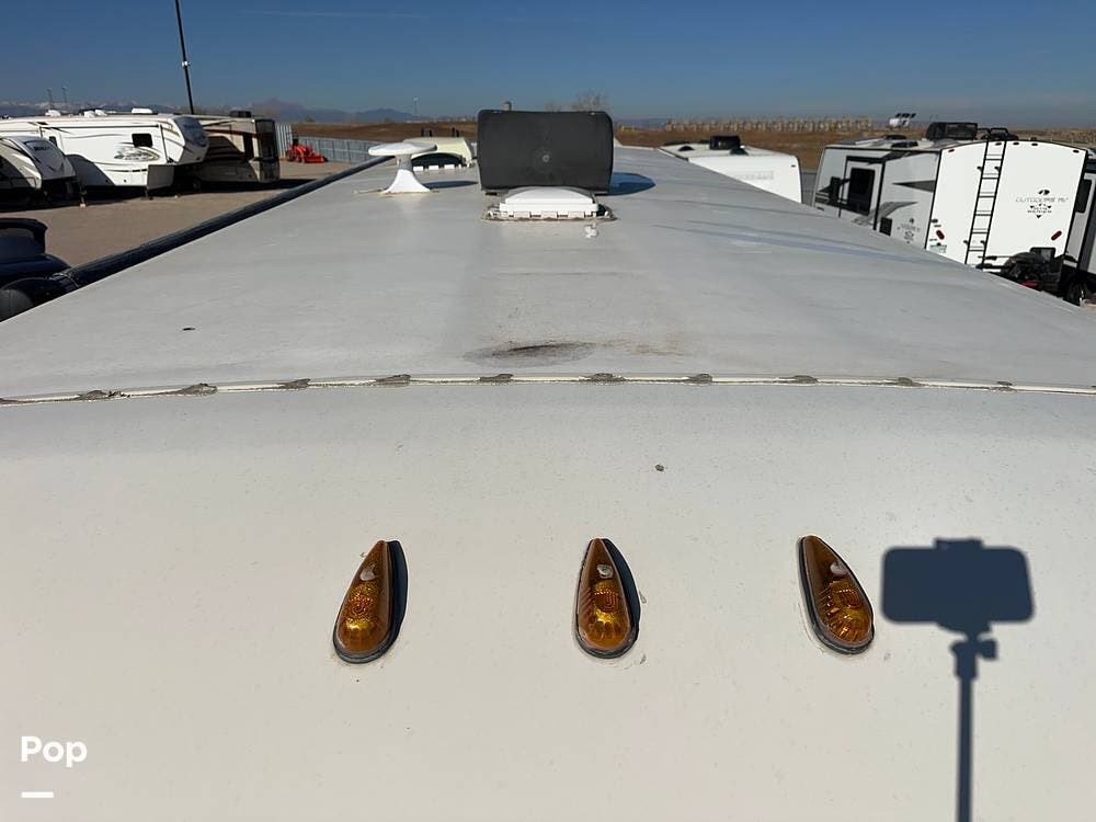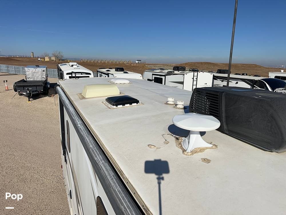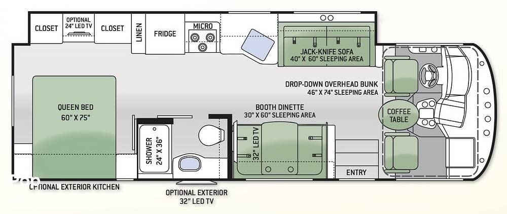 It is located in Erie, CO and among the many interior features you'll find in this roomy full-wall slide-out model is a drop down bed over the driver area, both a dinette and sofa that convert to sleeping areas, swivel captains chairs with a small table that can be located between and a large main bedroom with queen bed, 2 - closets & TV.