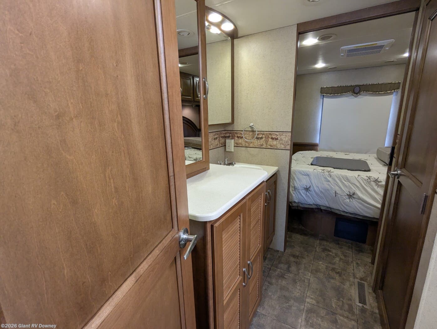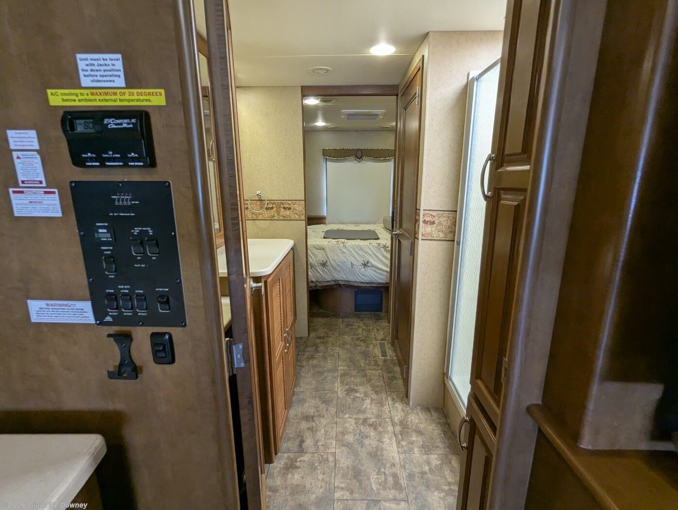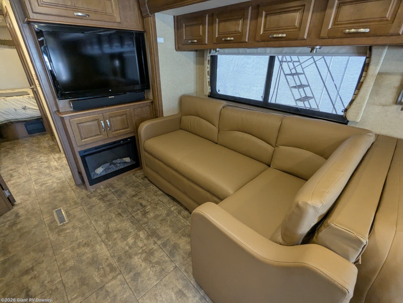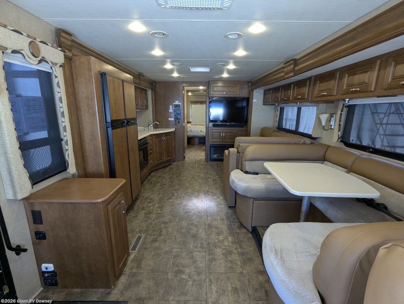 Take the family on a trip in the 2015 Thor Motor Coach Challenger 37DT Class A RV at Giant RV in California! Perfect for family adventures, this motorhome features a rear king bedroom, bunk over cab, and three slide-outs, sleeping up to 6. The kitchen includes an 8 cu. ft. fridge, 3-burner cooktop, and microwave. A full bath with shower ensures comfort. Enjoy a 21’ awning and 65-gal fresh water tank. Built on a Ford F-53 chassis with a 6.8L V10 engine, it includes dual 15,000 BTU A/Cs and a 30,000 BTU furnace.