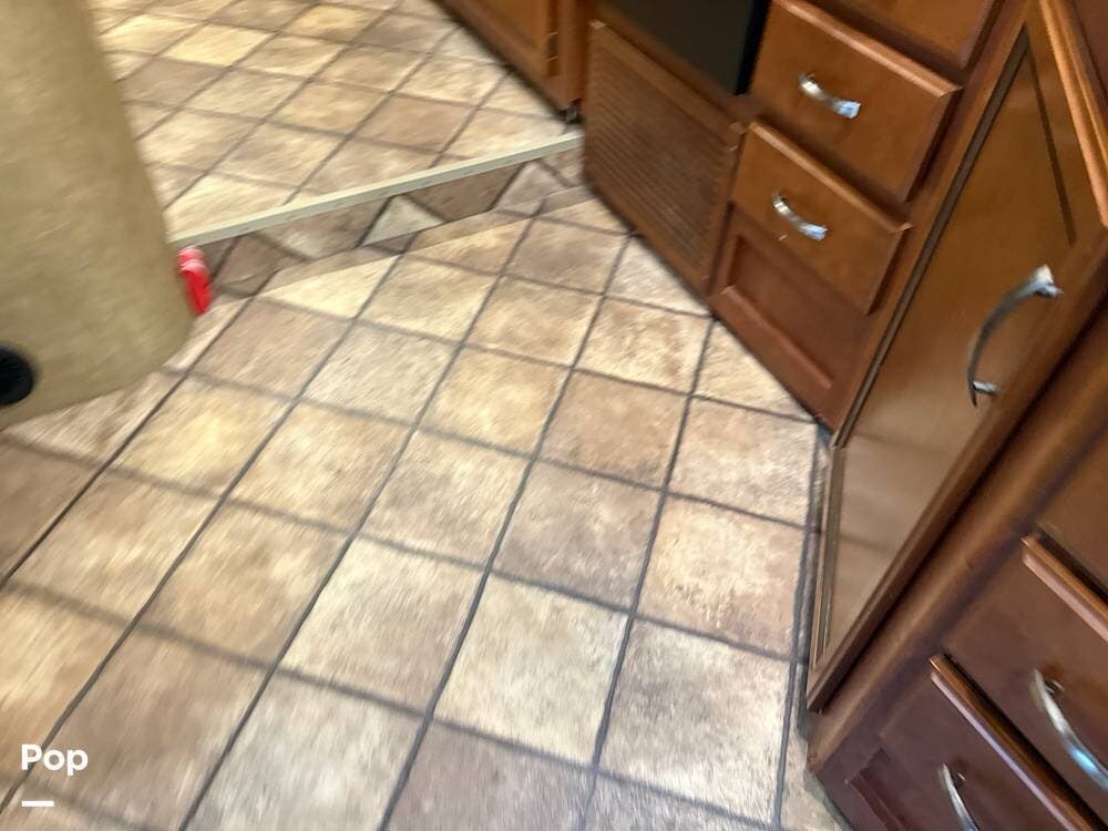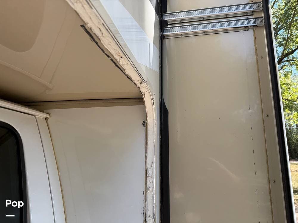 The interior space is quite expansive, featuring a large, super slide-out. It has a huge master bedroom and a nice-sized living area.