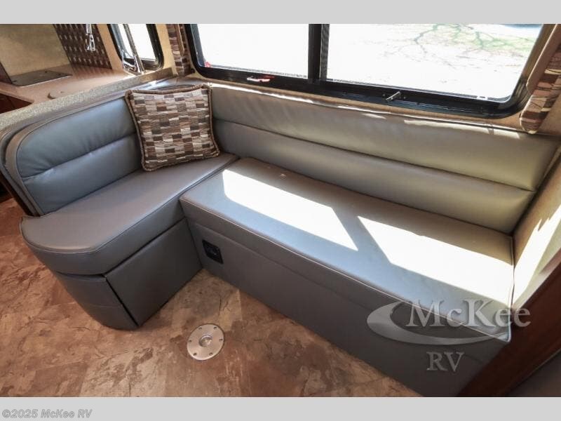 The Citation Sprinter 24SL Class B+ diesel motor home by Thor Motor Coach features a L-shaped sofa with a pedestal table and a rear bathroom.