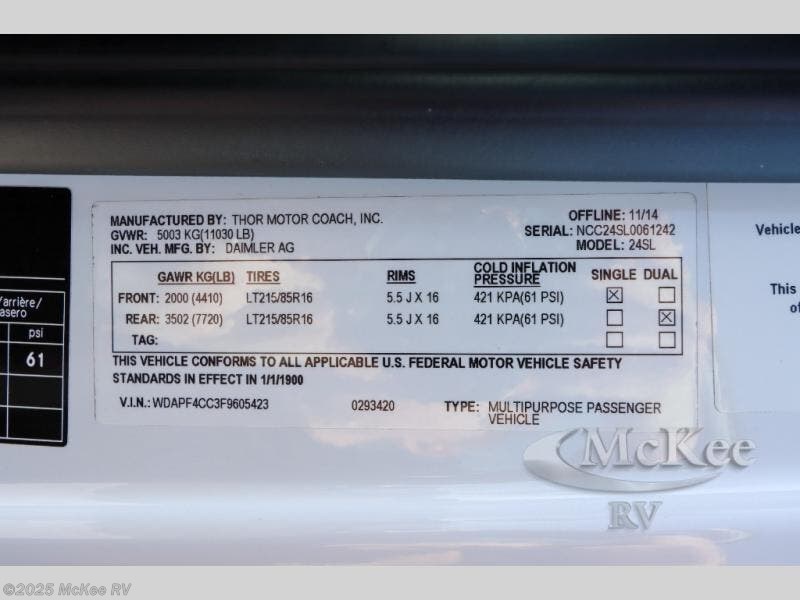 Request More Info on this 2015 Thor Motor Coach Citation Sprinter 24SL Offered for sale by McKee RV