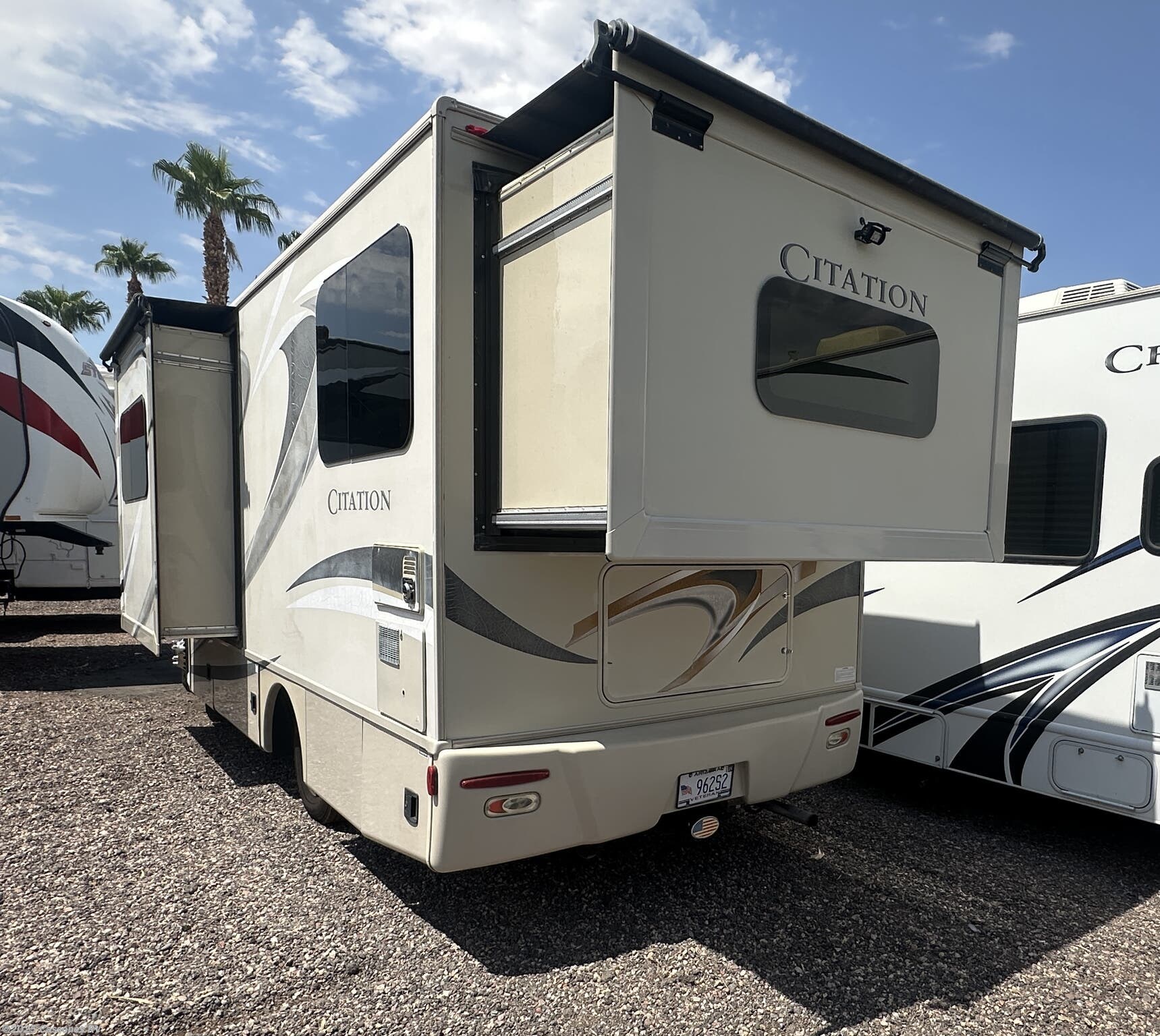 Awning, Backup Monitor, External Shower, Hitch, Power Entrance Step, Skylight, Slideout, Slide-out Awning, Spare Tire Kit -