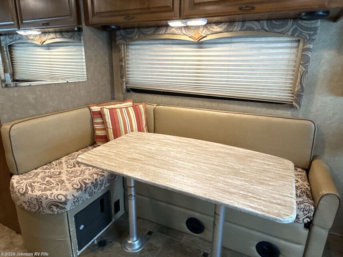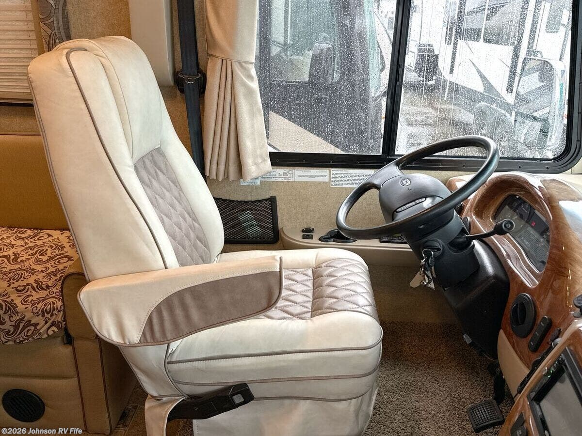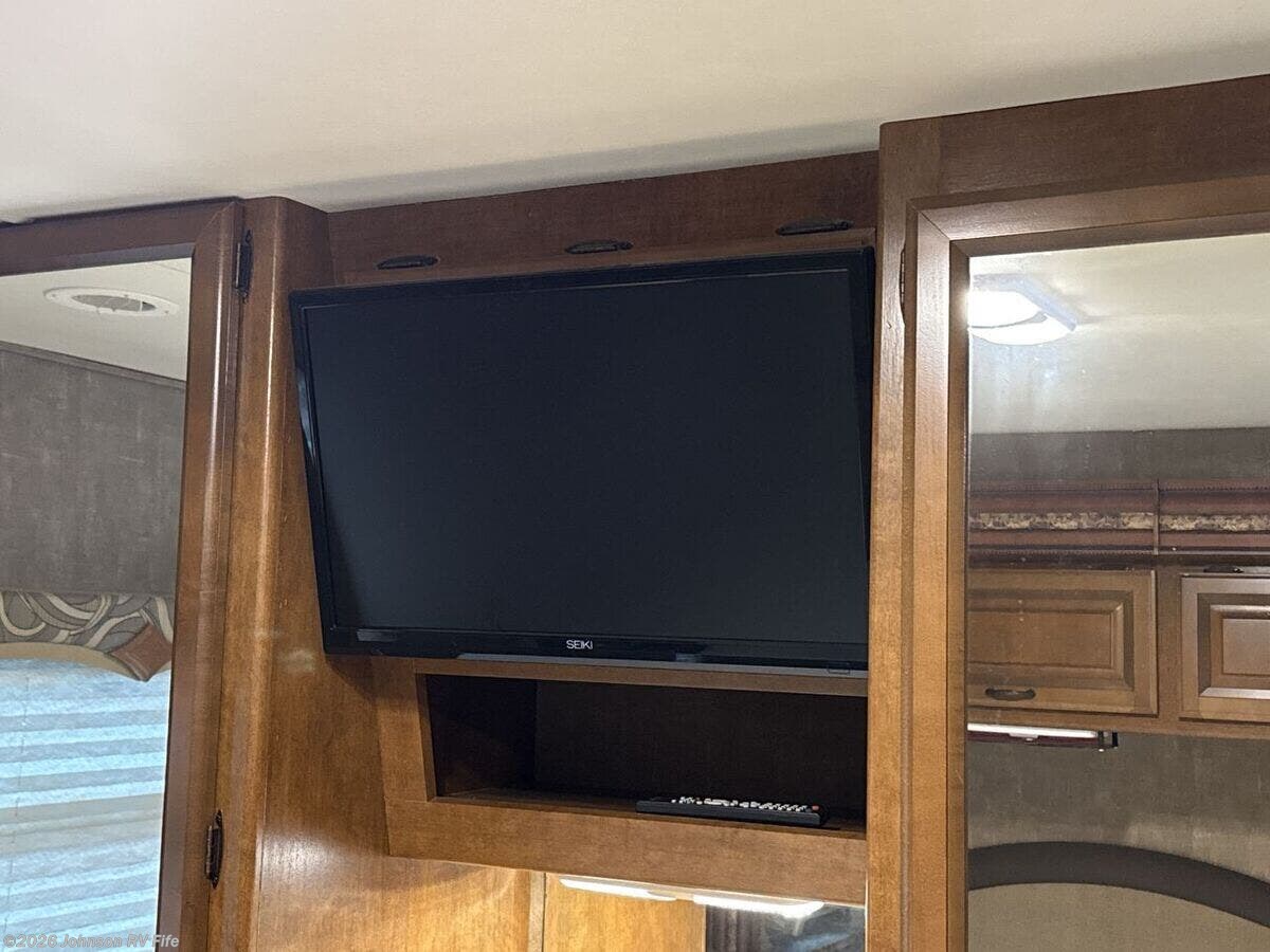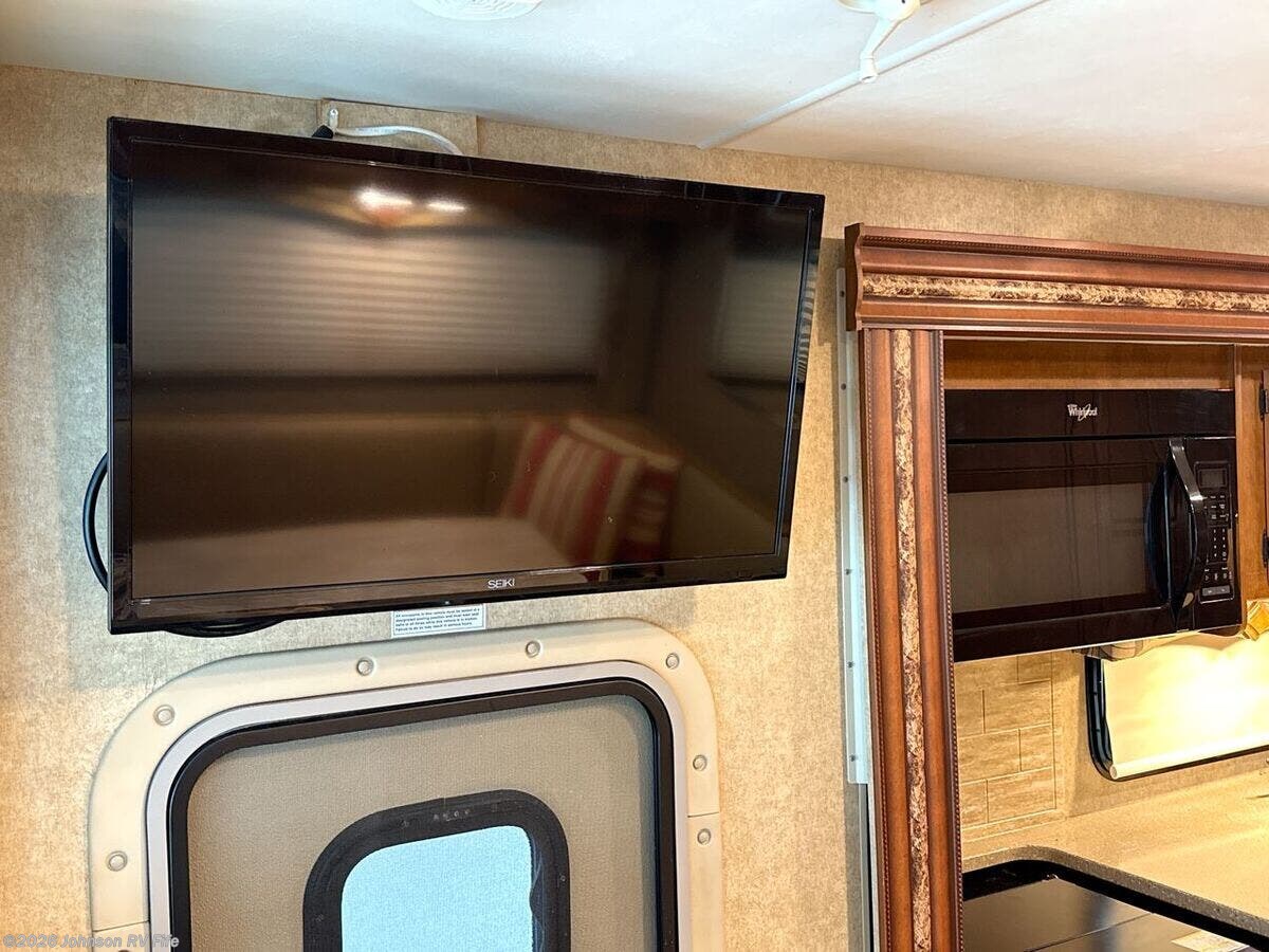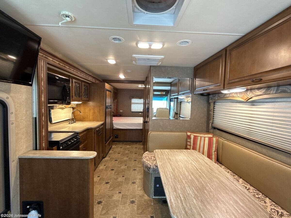 Experience life on the road with the 2015 Thor Motor Coach Hurricane 27K, a Class A RV that combines comfort, style, and durability. Built on the reliable Ford F-53 chassis, this vehicle is powered by a Triton 6.8L V10 gas engine that delivers 362 horsepower and 475 lb-ft of torque. The TorqShift 5-speed automatic transmission ensures smooth operation, while Bilstein shocks and 4-wheel disc anti-lock brakes offer a stable and secure drive. The exterior showcases high-quality craftsmanship, featuring 19.5-inch stainless steel wheels, fog lights, and an 8000# hitch with a 7-pin connector. Enjoy the serene journey through a one-piece windshield, complete with a power drop-down bunk and heated remote side mirrors. Inside, the vehicle offers a spacious and luxurious living space complete with: - Power awning with LED lighting - Residential vinyl and carpet flooring - 82-inch high ceiling with LED ceiling lighting - Frameless windows with privacy shades and designer window treatments - Entertainment system with a large LED TV and overhead speakers The kitchen and dining areas are well-appointed, designed for convenience and functionality: - Dream dinette booth - Solid surface kitchen countertops with a double bowl sink - Designer backsplash - Double door refrigerator, 3-burner cooktop, and gas oven - Outdoor cooking capabilities For your relaxation, the sleeping area provides: - Queen or King Denver Mattress with designer headboard and bedding - Bluetooth coach radio speakers - TV prep and washer/dryer prep - Optional bunk beds (34J) with LED TVs and DVD player The bathroom comes equipped with: - Vanity sink with linen storage - Glass shower door and shower skylight - Porcelain toilet with a power vent Engineered for comfort in any climate, the Hurricane comes with: - Onan RV gas generator - 30- or 50-amp service with a detachable service cord - Ceiling ducted 13.5k AC unit(s) - 30k or 35k furnace - 6-gallon DSI hot water heater with bypass Built to last, the construction of this RV includes a welded steel floor frame, vacuum-bond laminate, and a high gloss fiberglass exterior. The seamless TPO roofing and 3TRAX wall slide systems further enhance the durability and functionality of this versatile vehicle. With its seamless integration of thoughtful features and high-quality materials, the 2015 Thor Motor Coach Hurricane 27K is ideal for those seeking adventure without sacrificing the comforts of home. ???