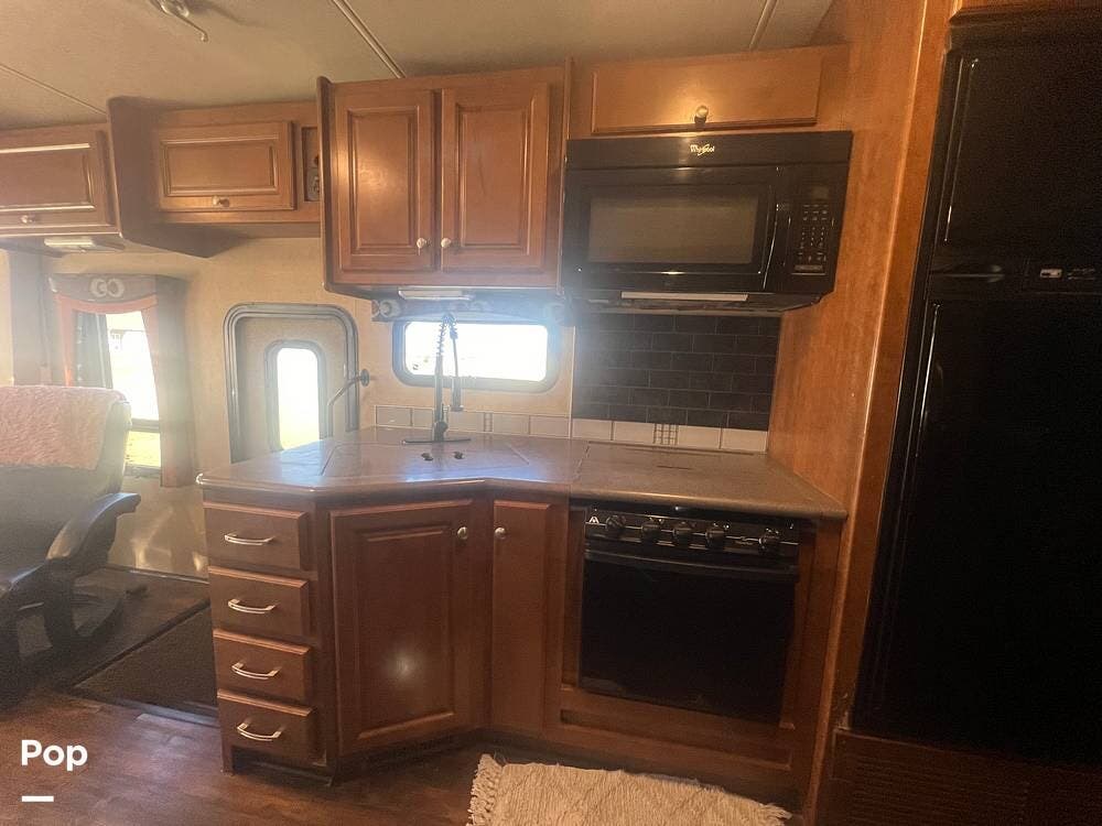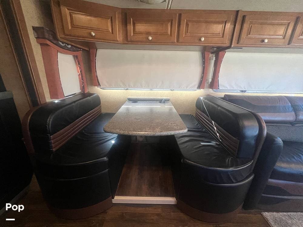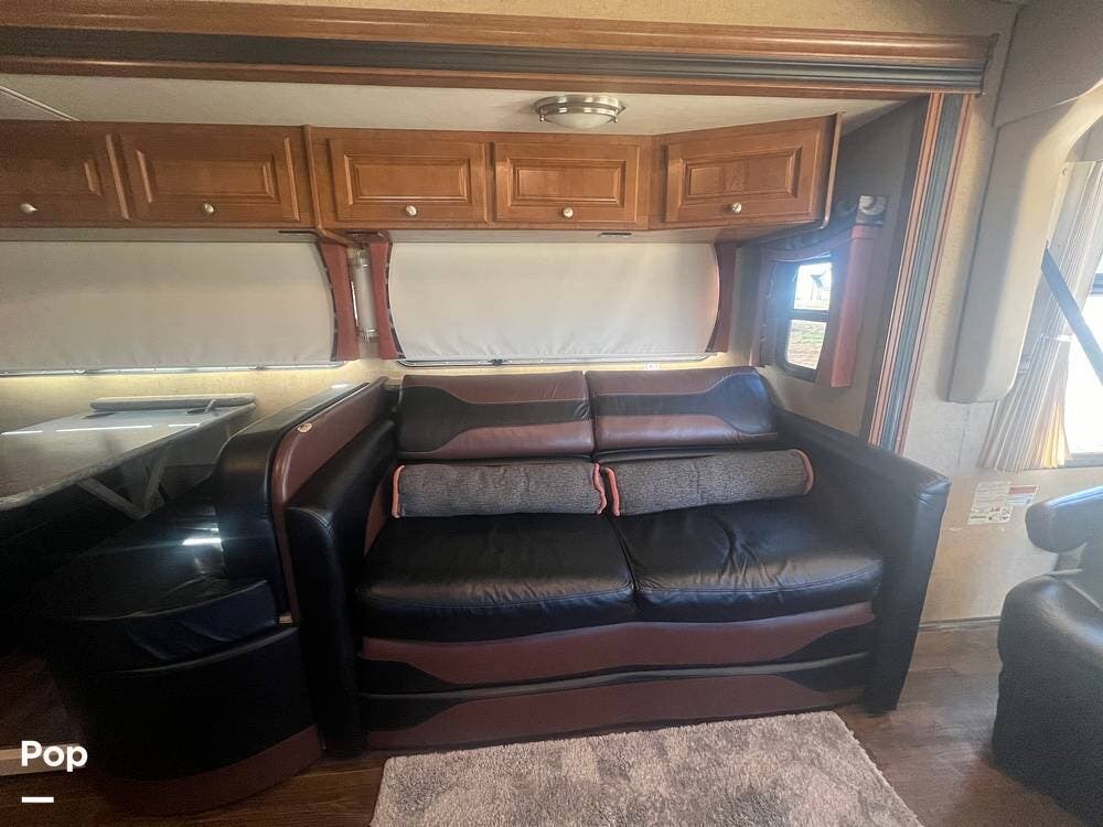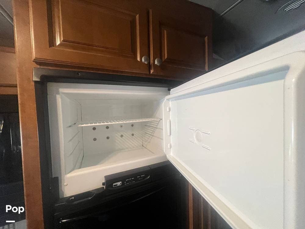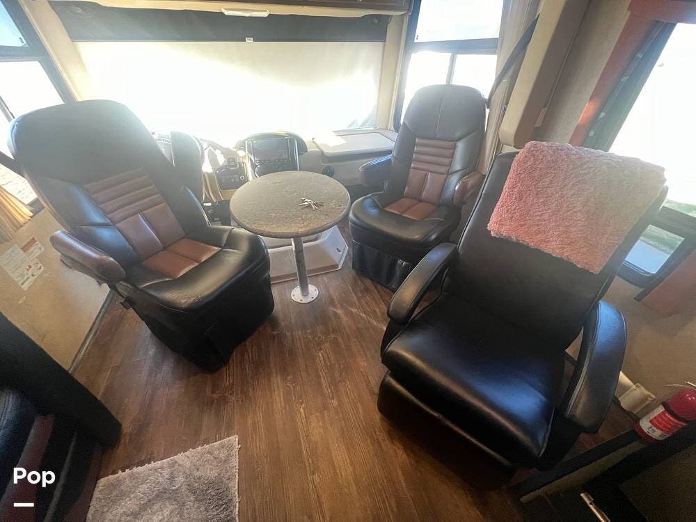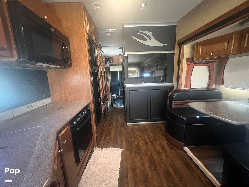 Inside, the 37LS offers a well-appointed living space with high-quality finishes, including leatherette furniture. It has a spacious kitchen with solid-surface countertops, a three-burner gas range, and a residential-style refrigerator.
