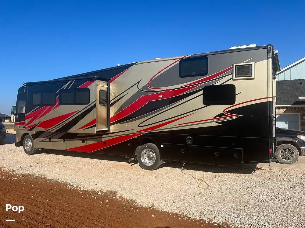 Built on a Ford F-53 chassis and powered by a 6.8L Triton V10 engine, this RV delivers reliable performance and ample towing capacity.