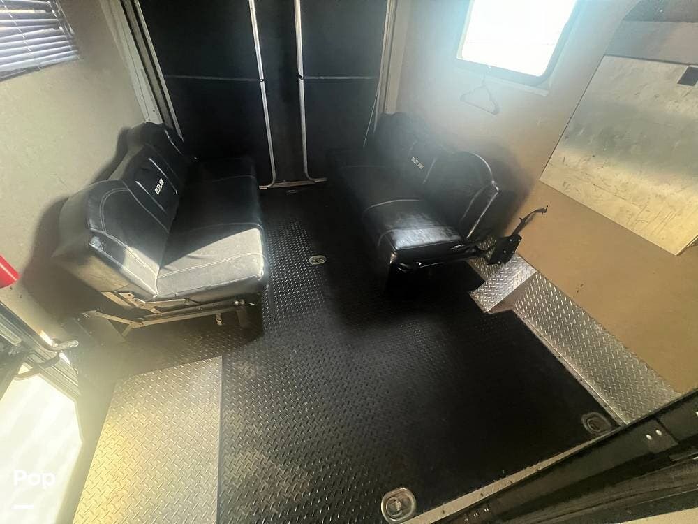 One of its standout features is the rear garage area, which has tie-downs, a ramp door, and a drop-down patio system. This makes it ideal for transporting motorcycles, ATVs, or other gear.