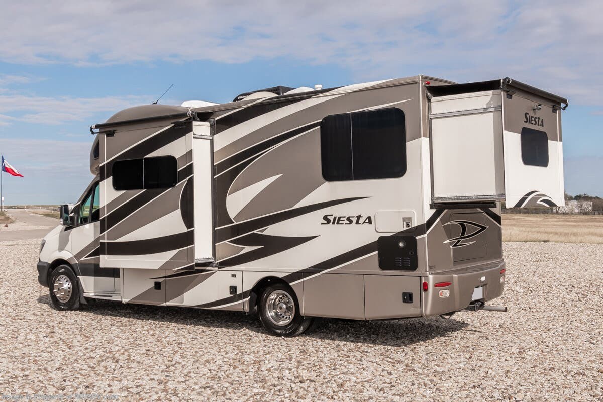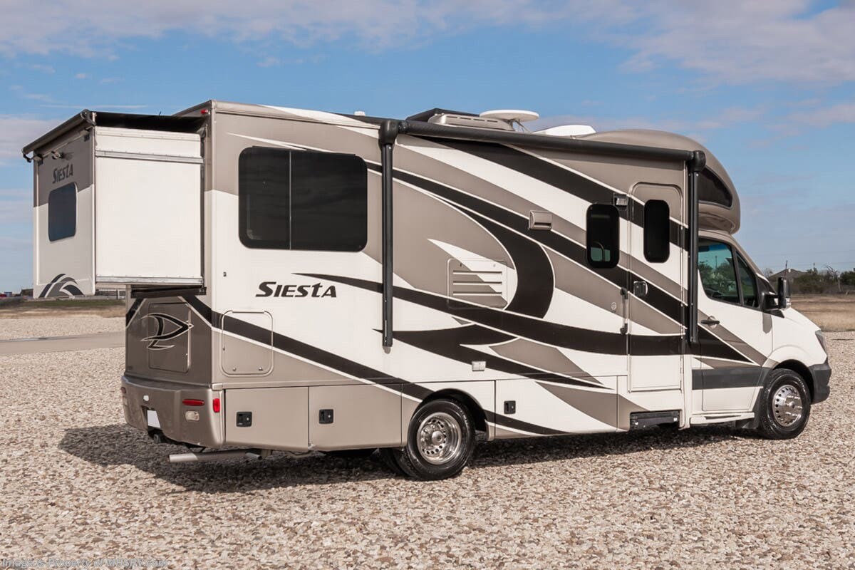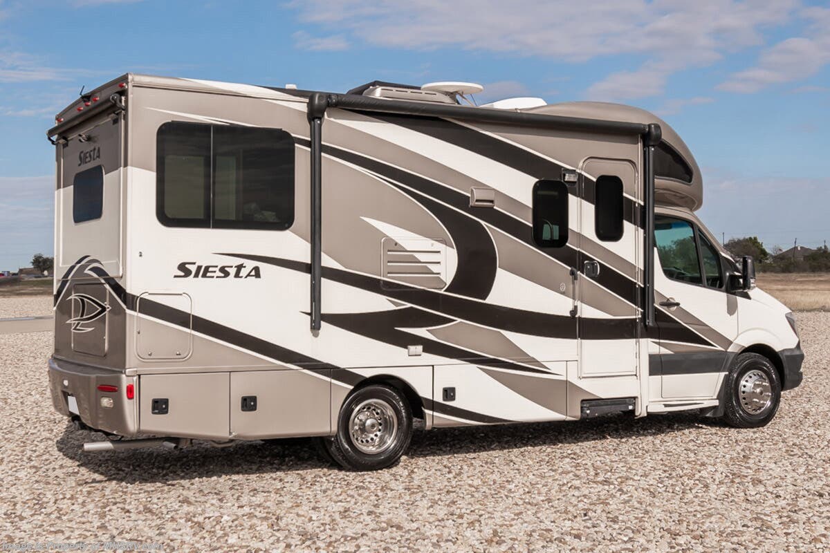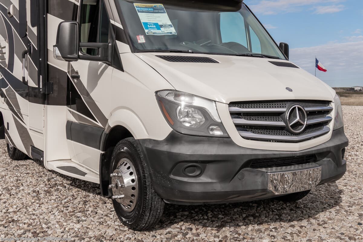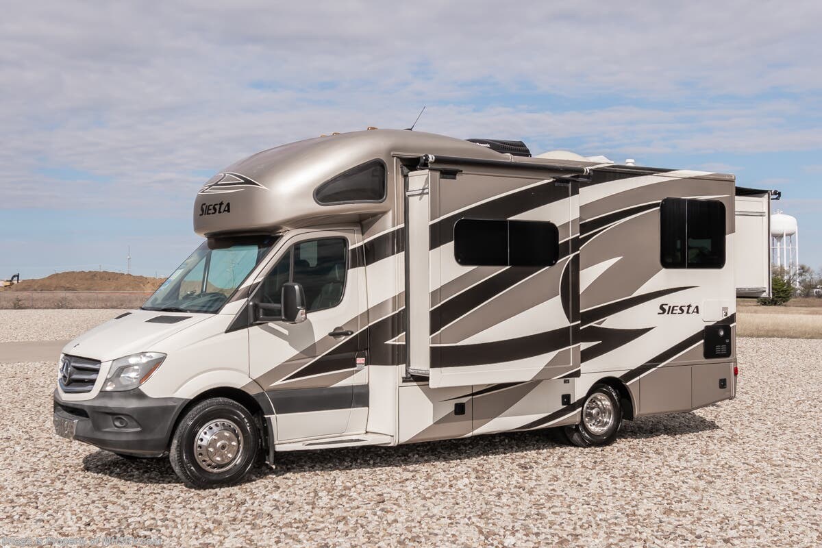 Used Thor Motor Coach RV for sale – 2015 Thor Motor Coach Siesta 24SR is approximately 24’ 6” in length with 41,774 Miles, 2 slides and features full body paint, Onan 3.2KW Diesel generator, Mercedes-Benz diesel 3.0L engine, Mercedes-Benz chassis, driver door, GPS, keyless entry, power windows, power door locks, cruise control, patio awning, black tank flush, exterior shower, leather seating, 7 foot ceiling, convection microwave, solid surface counters and much more. For additional details on this unit and our entire inventory including brochures, window sticker, videos, photos, reviews & testimonials as well as additional information about Motor Home Specialist and our manufacturers please visit us at or call 800-335-6054 for our Texas location or 334-288-0331 for our Alabama location. At Motor Home Specialist, we DO NOT charge any prep or orientation fees like you will find at other dealerships. Read Thousands upon Thousands of 5-Star Reviews at and See What They Had to Say About Their Experience at Motor Home Specialist.