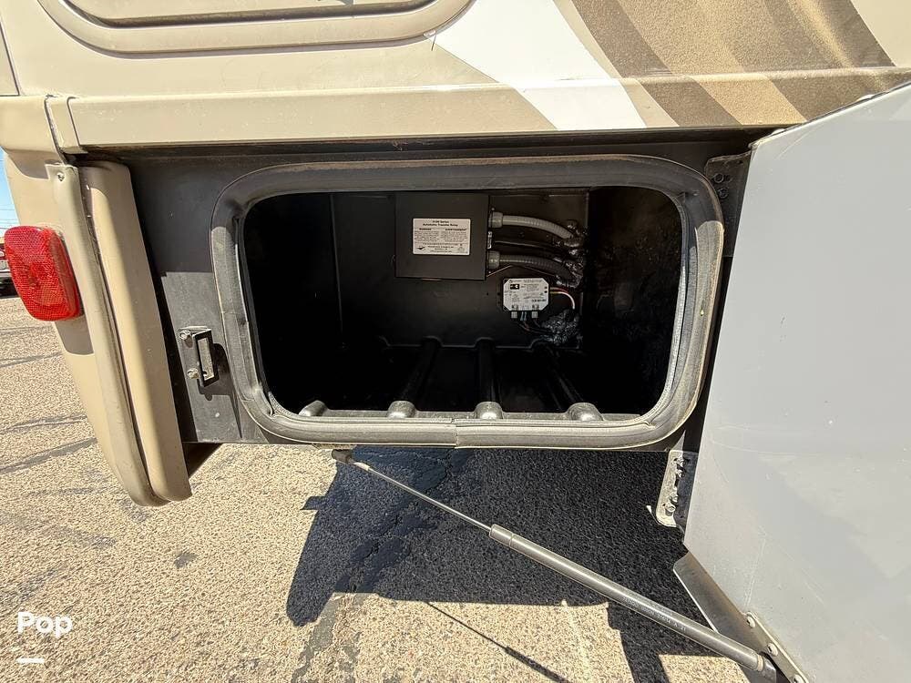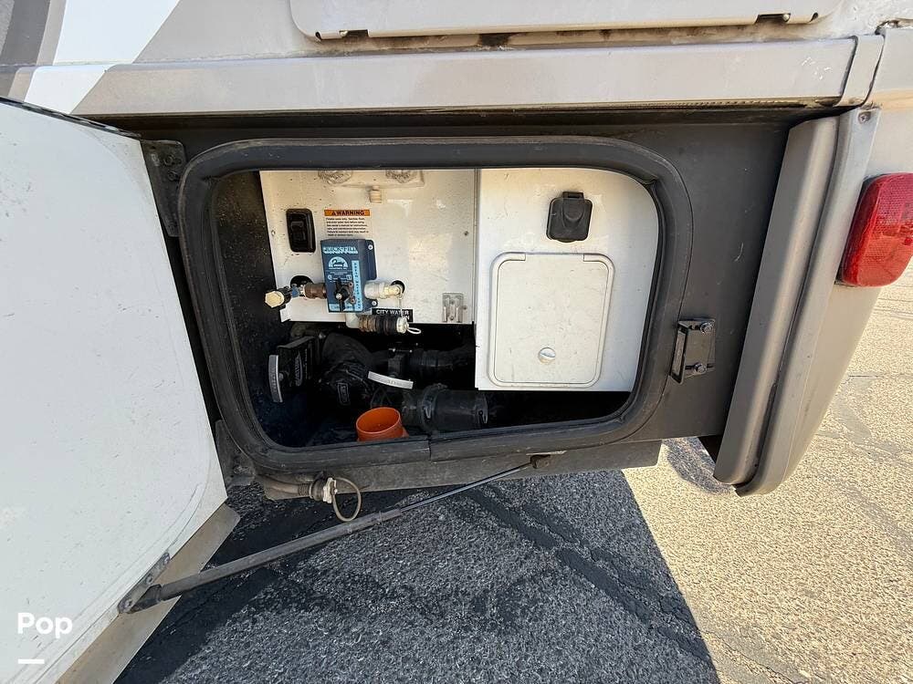 The unit is fully self-contained and equipped with everything you need for life on the road, including an onboard Onan LP/propane 3600W generator. It features two electric slide-outs, creating a spacious interior.