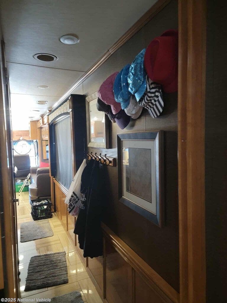 Step inside and immerse yourself in luxury. The expansive quad-slide layout opens to an elegant living space featuring premium furnishings, rich cabinetry, and high-end finishes throughout. The living area includes plush seating, a stylish entertainment center, and abundant room for lounging or hosting guests. Large windows frame your views while filling the interior with natural light.