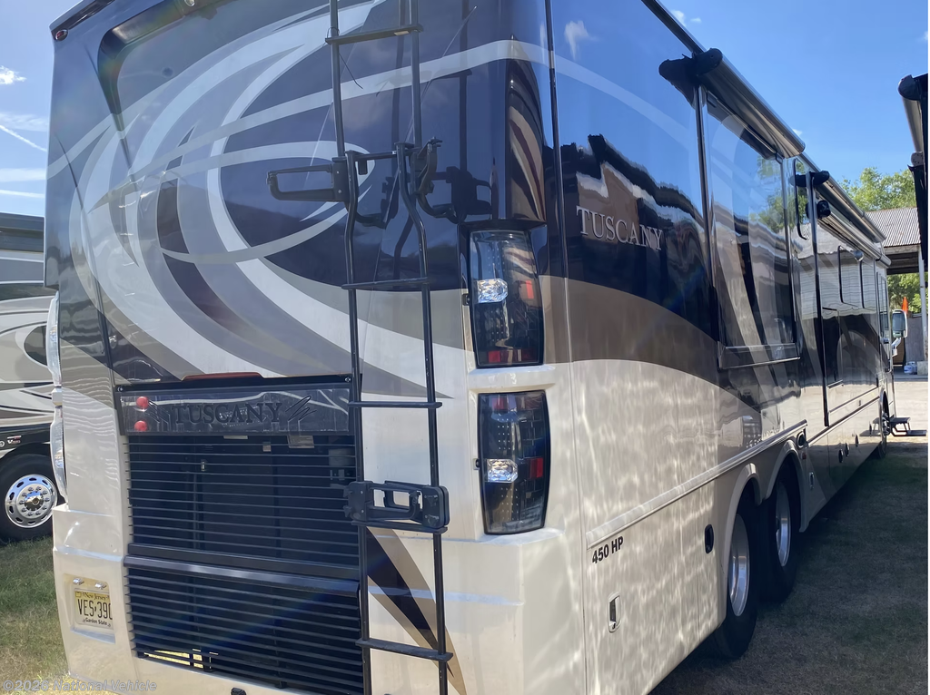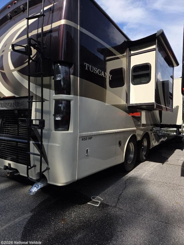 2015 Thor Motor Coach Tuscany 44MT 44' 10" Class A Motorhome. Cummins 8.9L 450HP Diesel Engine. 3 Slide Outs, 2 Awnings, Sleeps 8, 3 A/C Units, Leveling System.