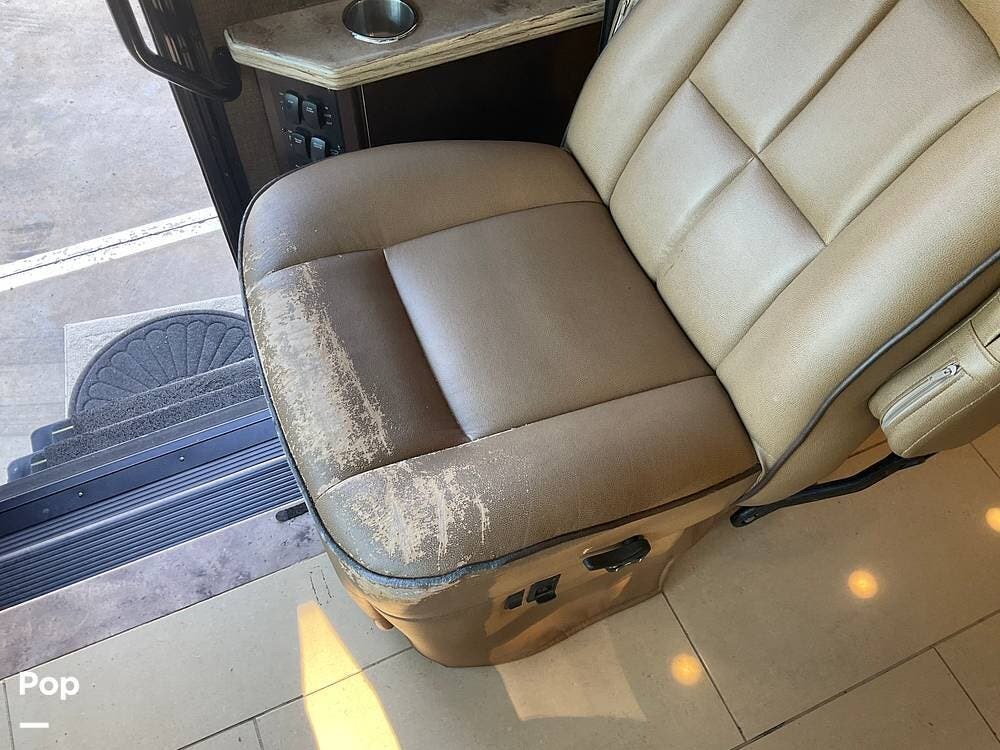 This RV features luxurious leather captain's chairs with electric controls for maximum comfort while driving.