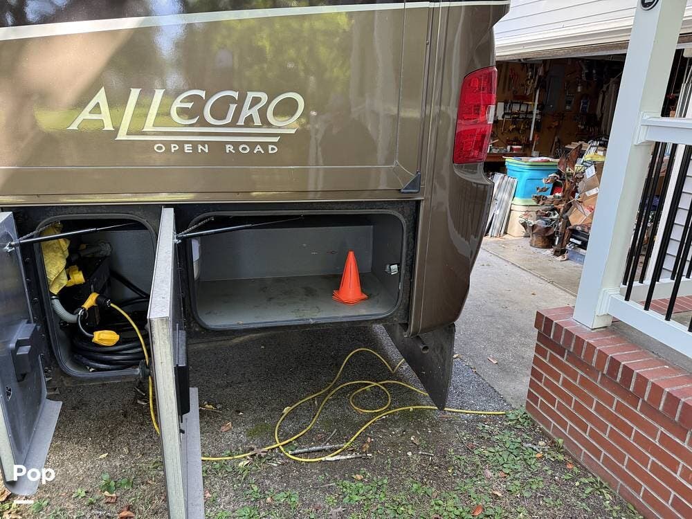The manufacturer of this Allegro has utilized every inch of storage space in both the interior and exterior basement areas.