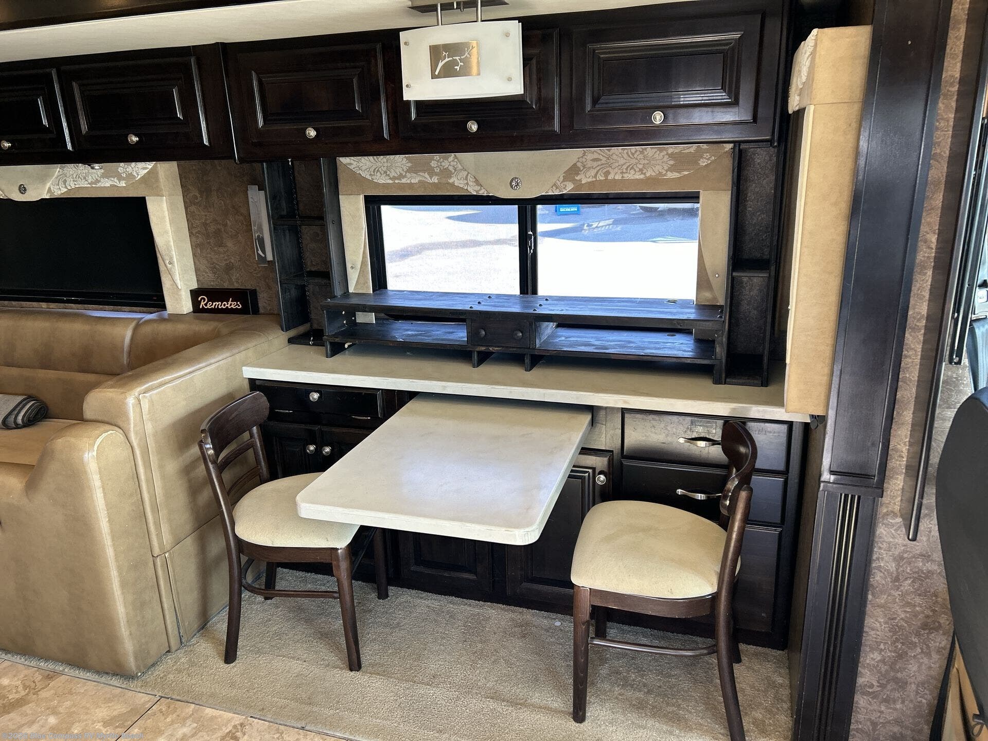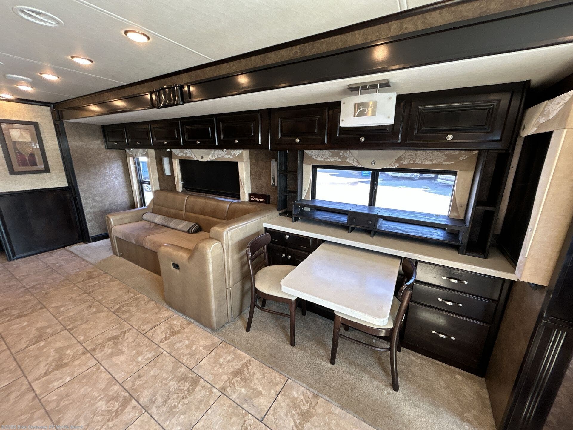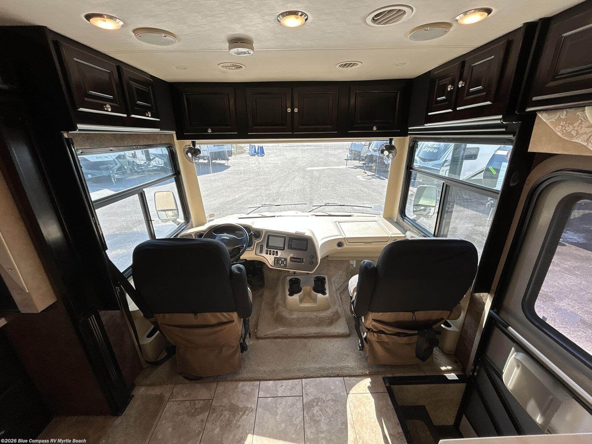 Step into the Allegro 36 LA class A motorhome to find two captain's chairs and overhead cabinets at each side in the front of the coach. You may choose an optional center TV and an optional driver side door.