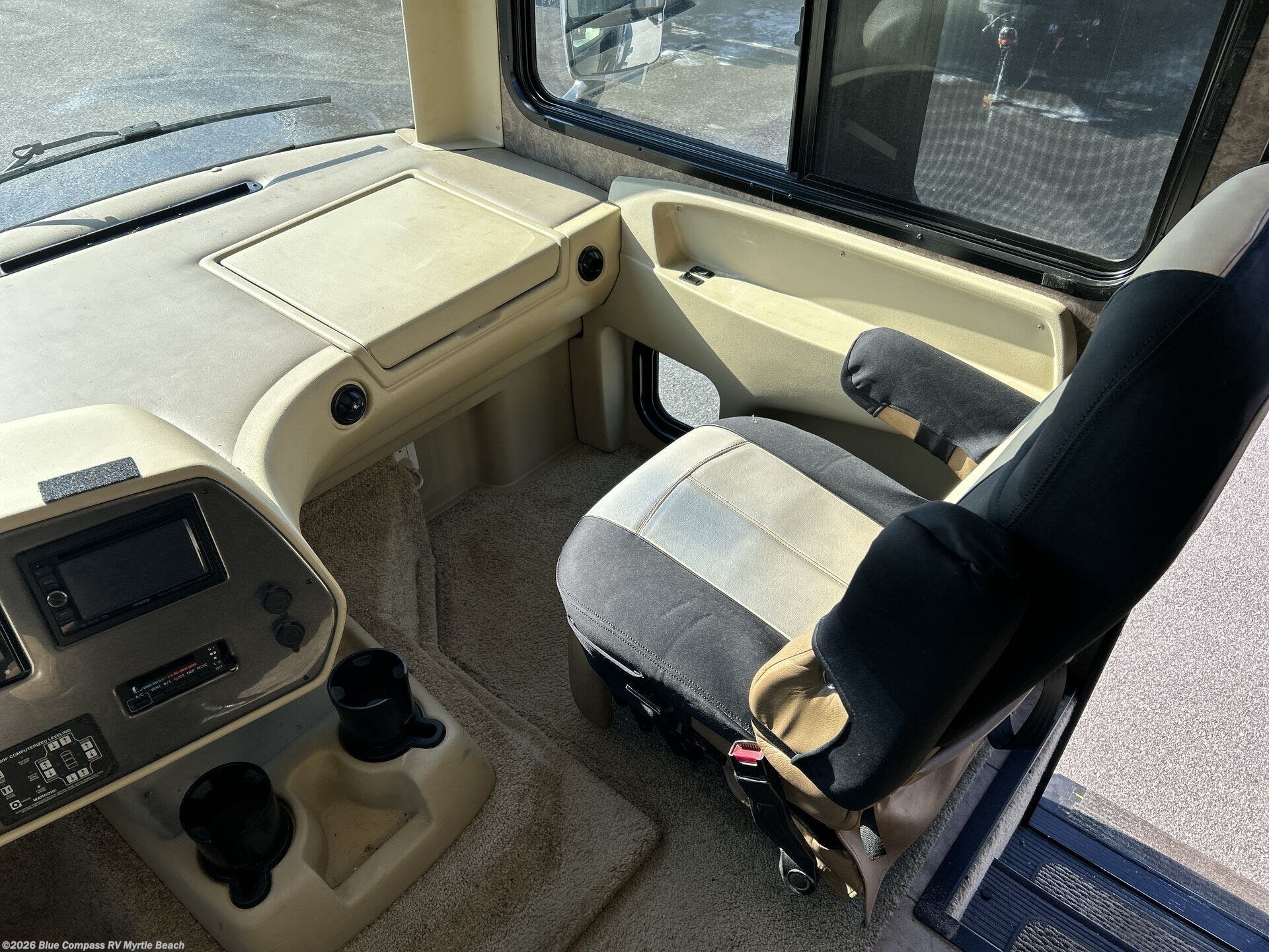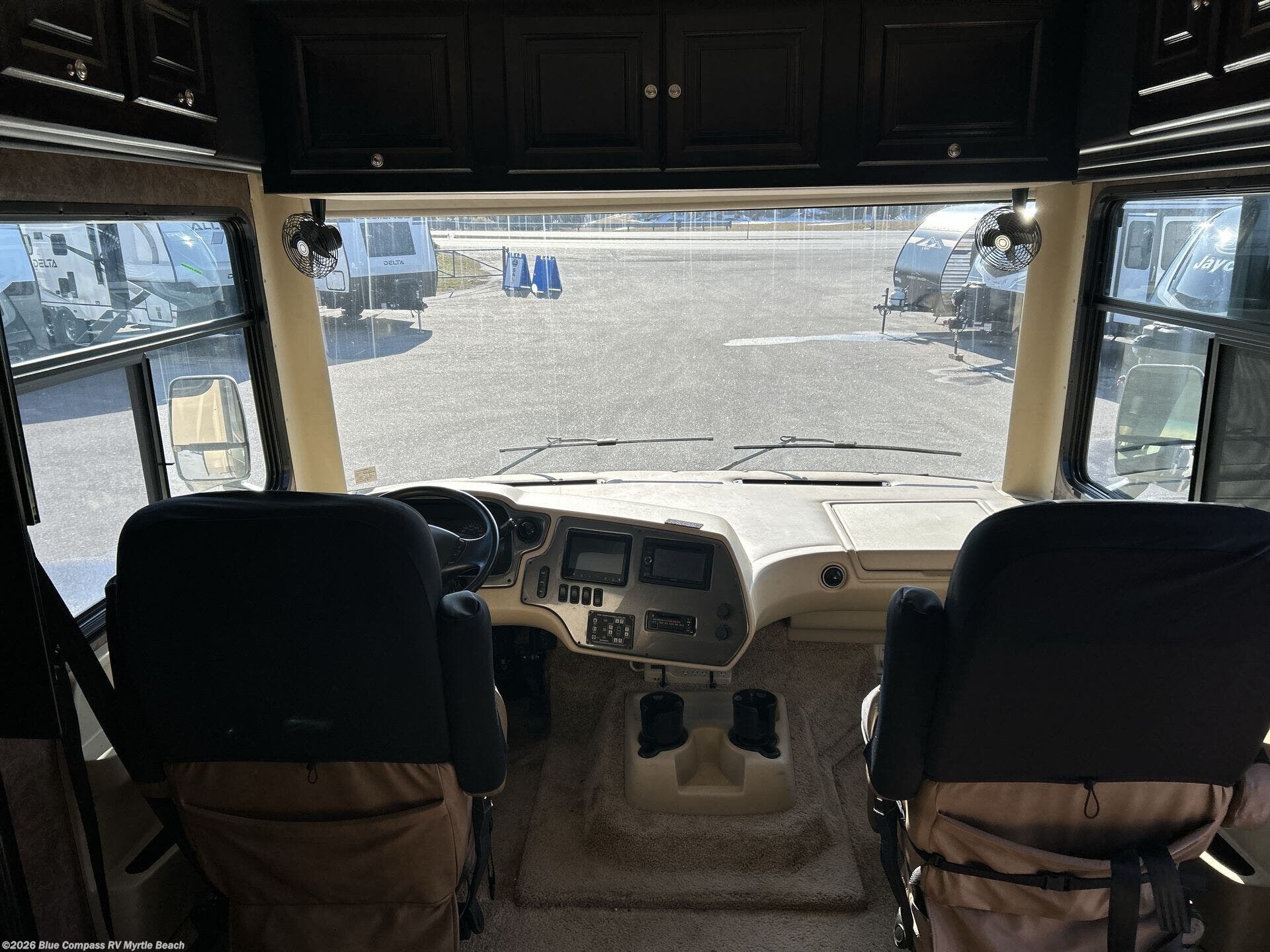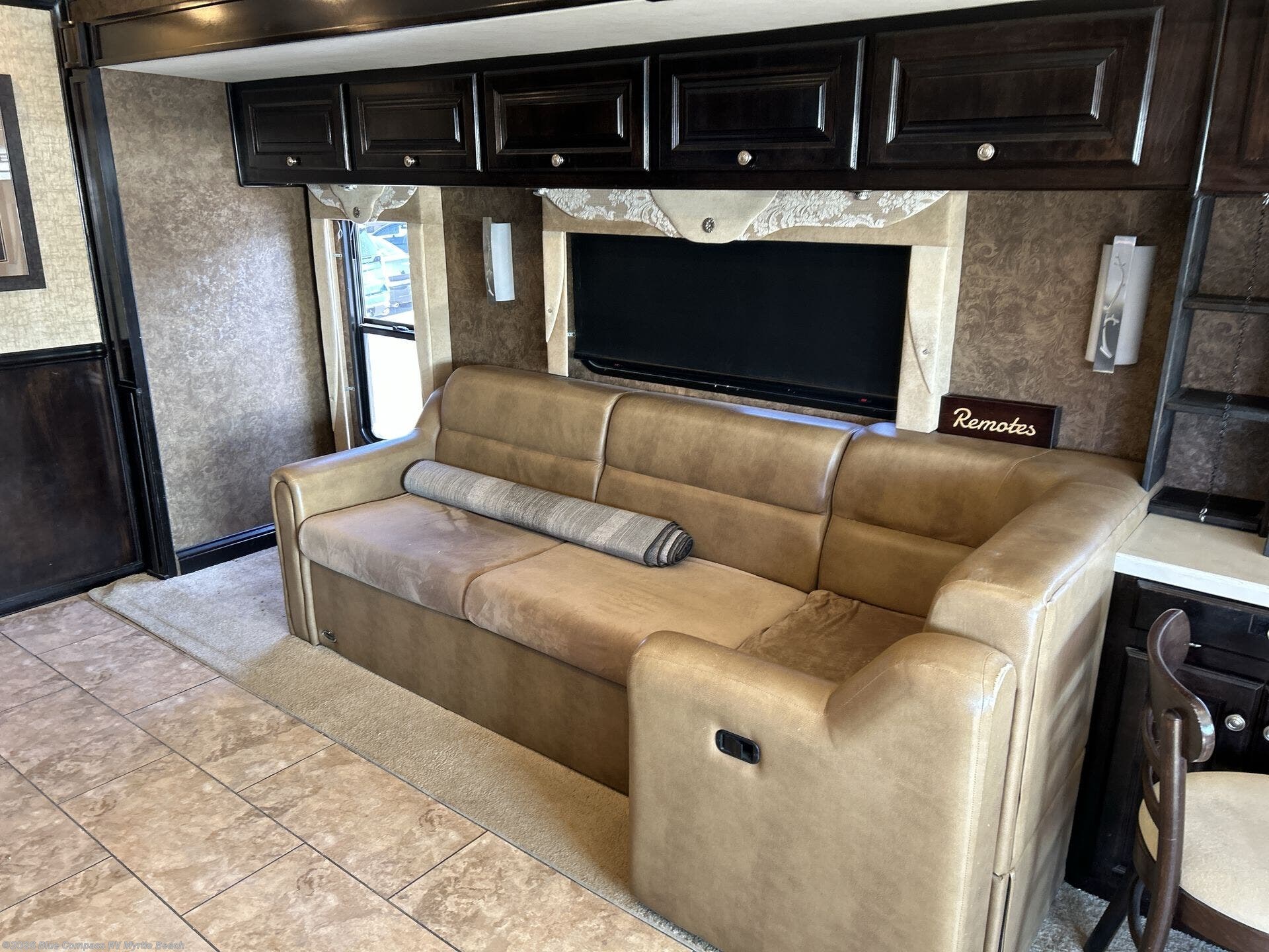 Step into the Allegro 36 LA class A motorhome to find two captain's chairs and overhead cabinets at each side in the front of the coach. You may choose an optional center TV and an optional driver side door.