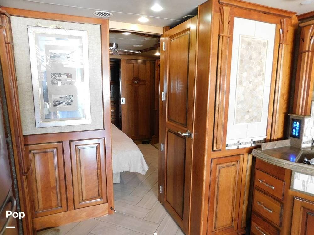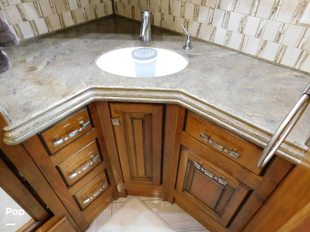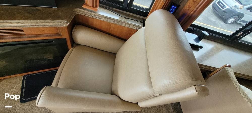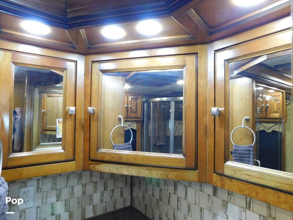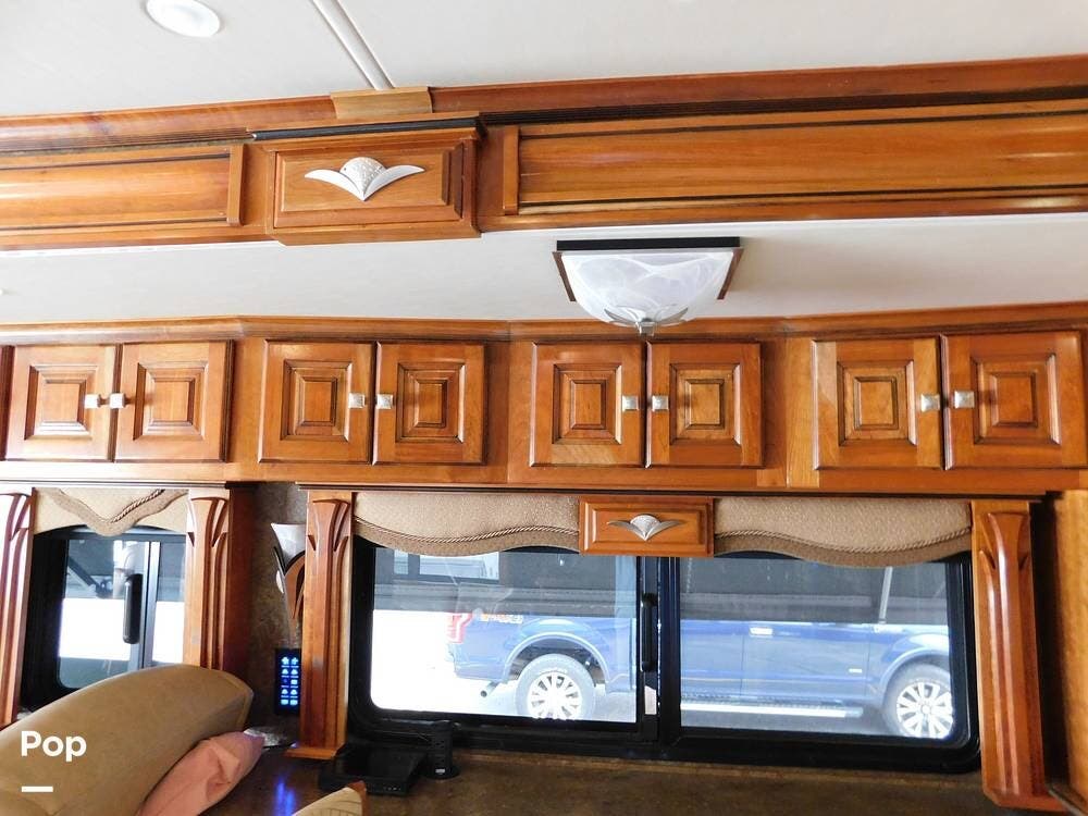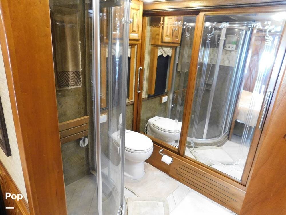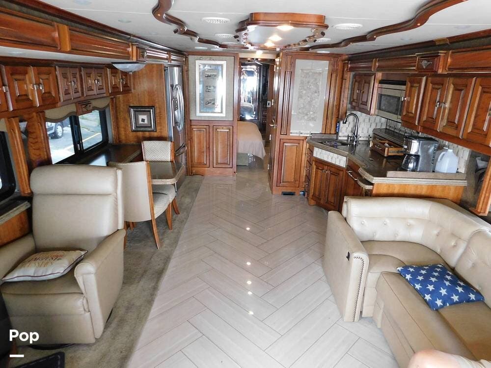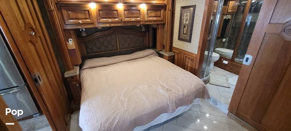 On the road, offering a quiet ride sitting on the custom-built Powerglide chassis. Powered by a 450HP ISL9 Cummins motor with an Allison 3000 MH 6-speed tranny able to tow up to an astonishing 15,000 pounds!