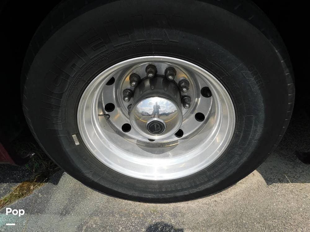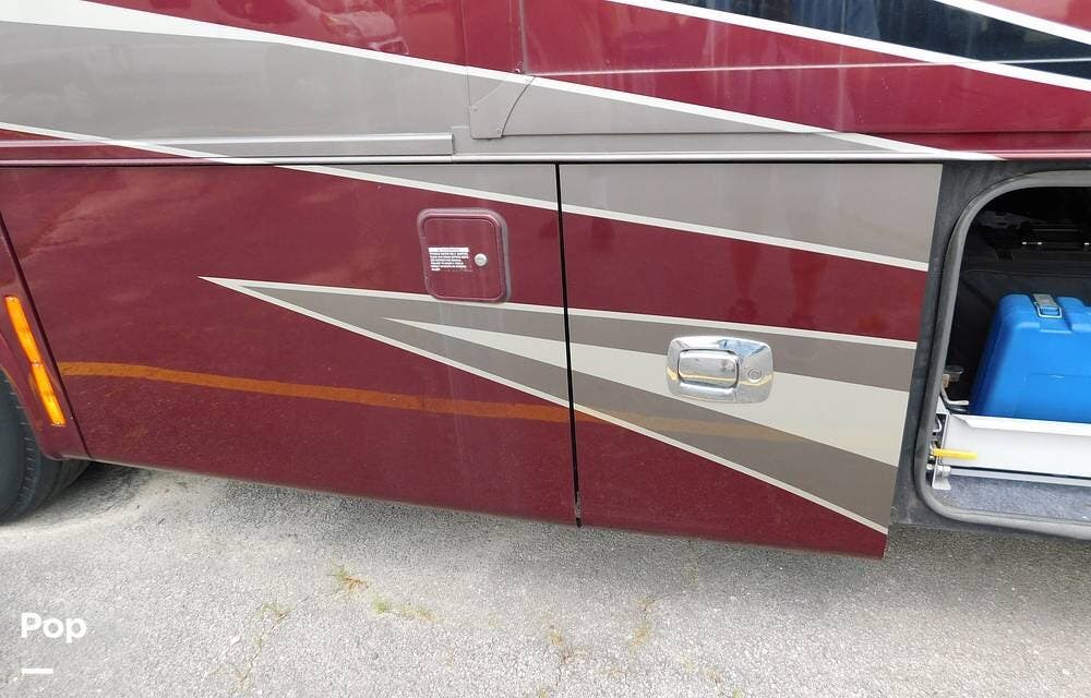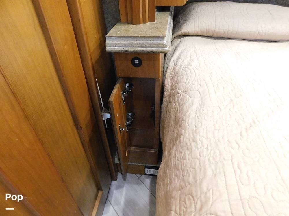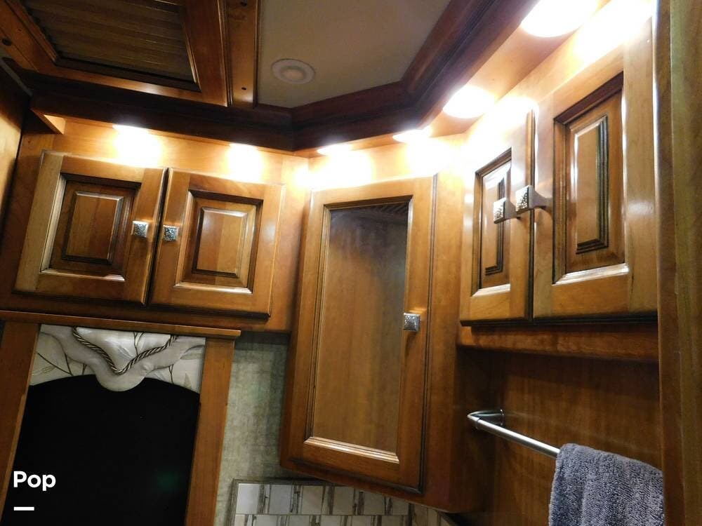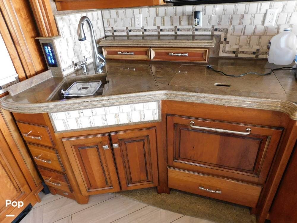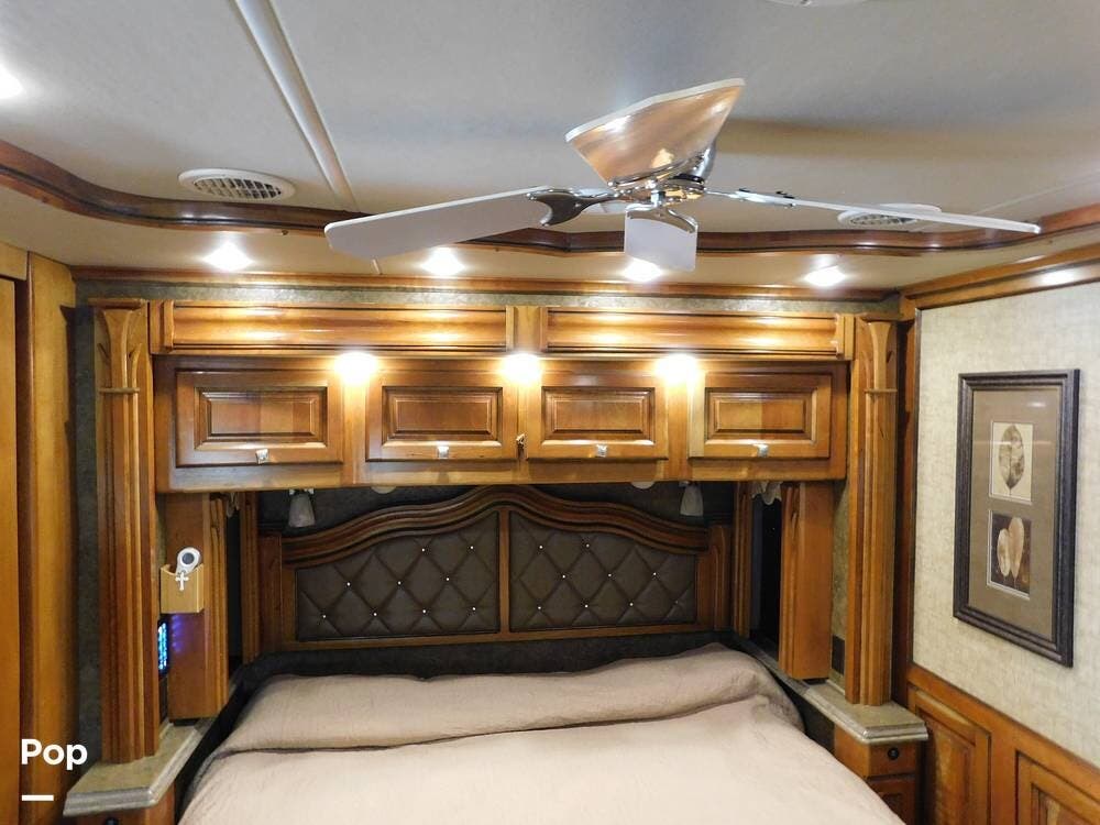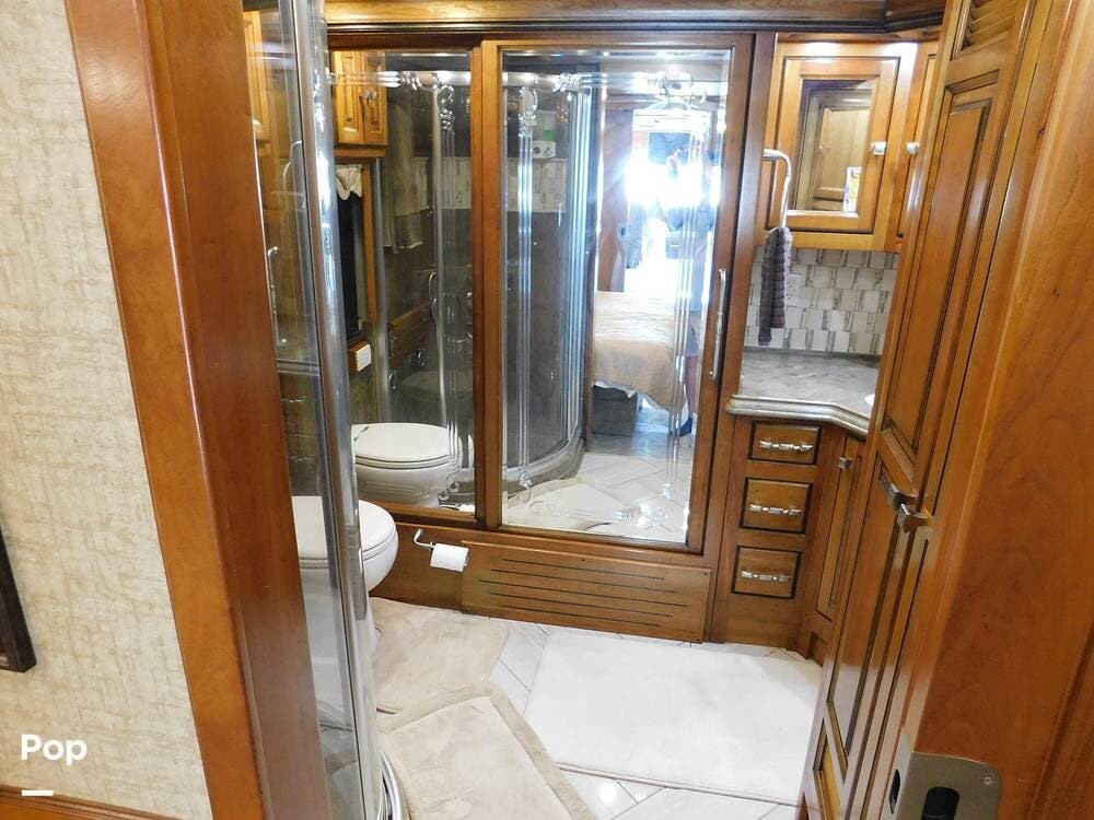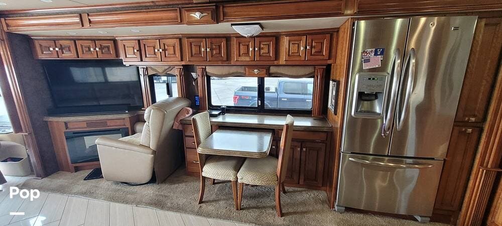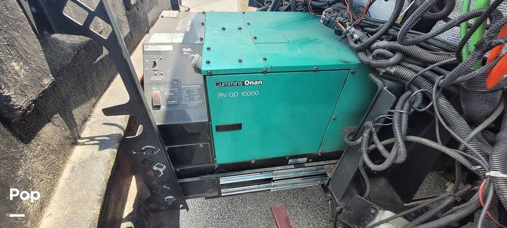 On the road, offering a quiet ride sitting on the custom-built Powerglide chassis. Powered by a 450HP ISL9 Cummins motor with an Allison 3000 MH 6-speed tranny able to tow up to an astonishing 15,000 pounds!